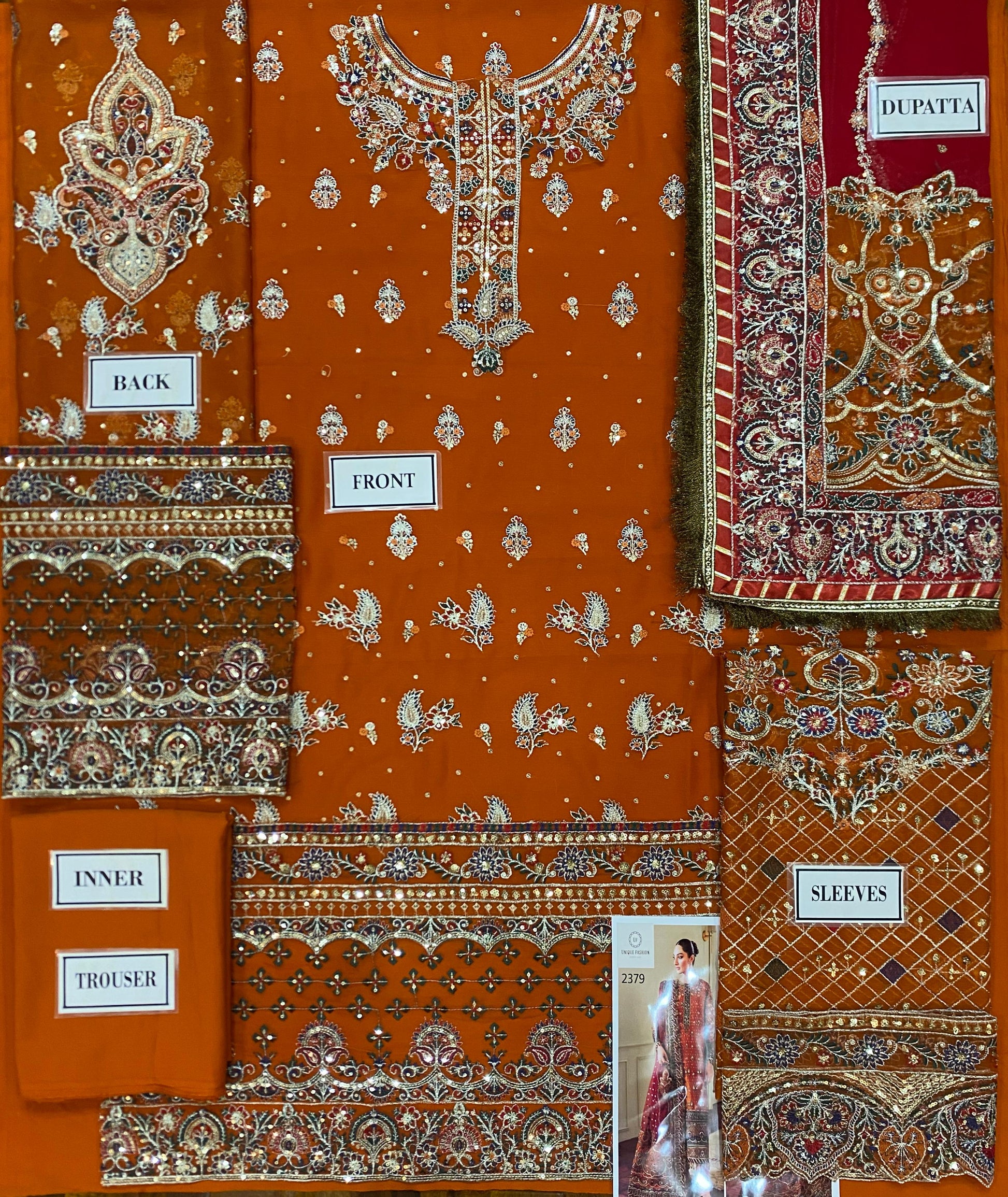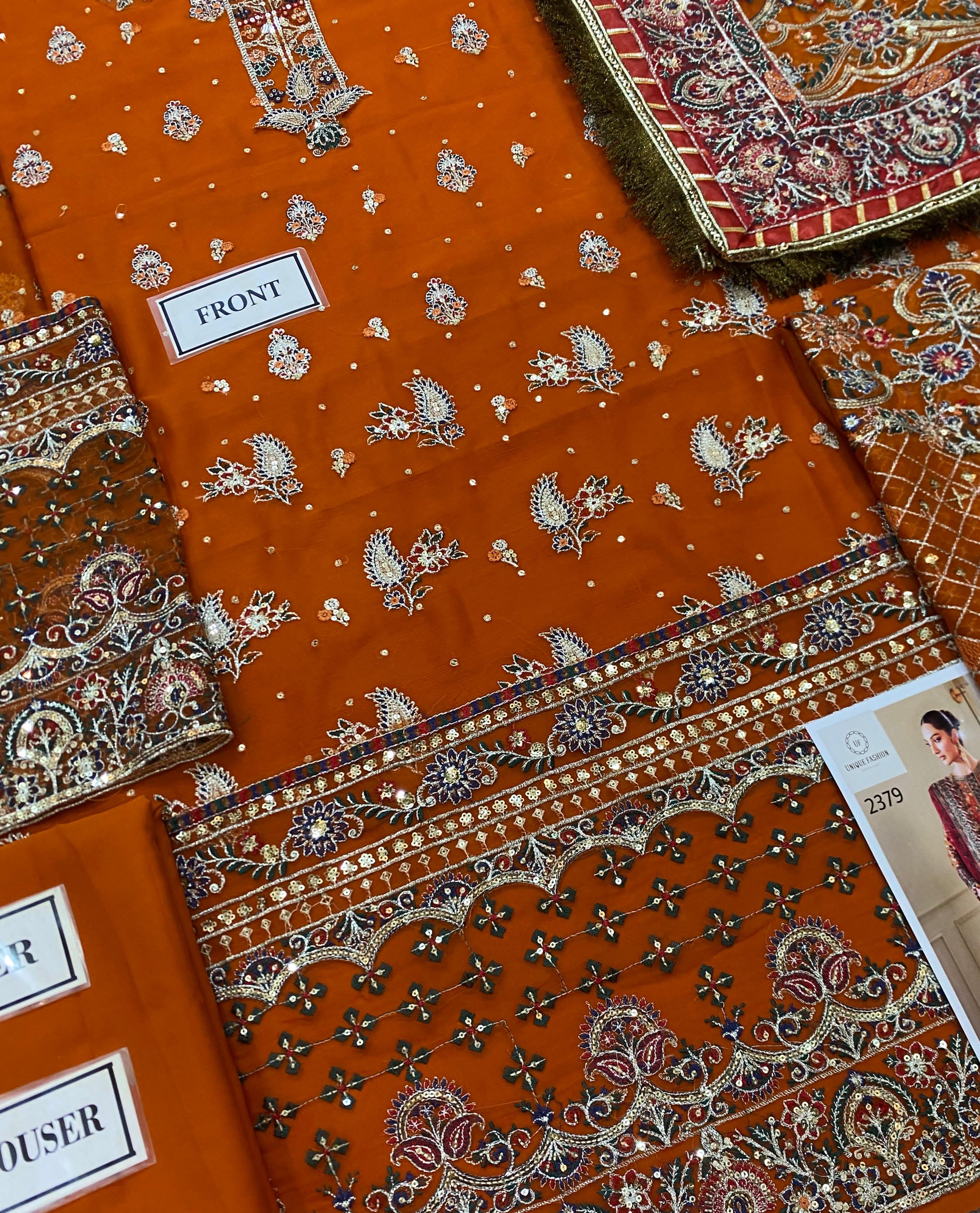 Semi pure chiffon embroidered dupatta with 4 Sides embroidered Borders with heavy Pallu Attached Dupatta