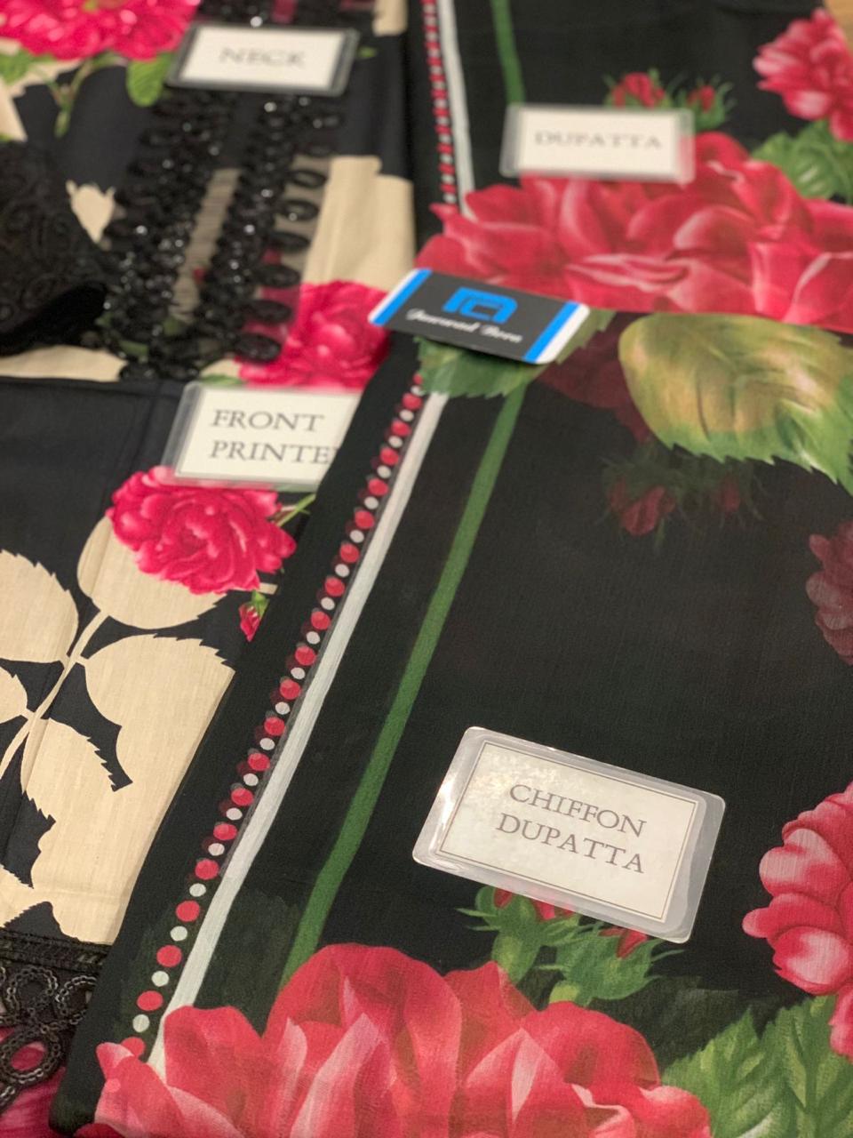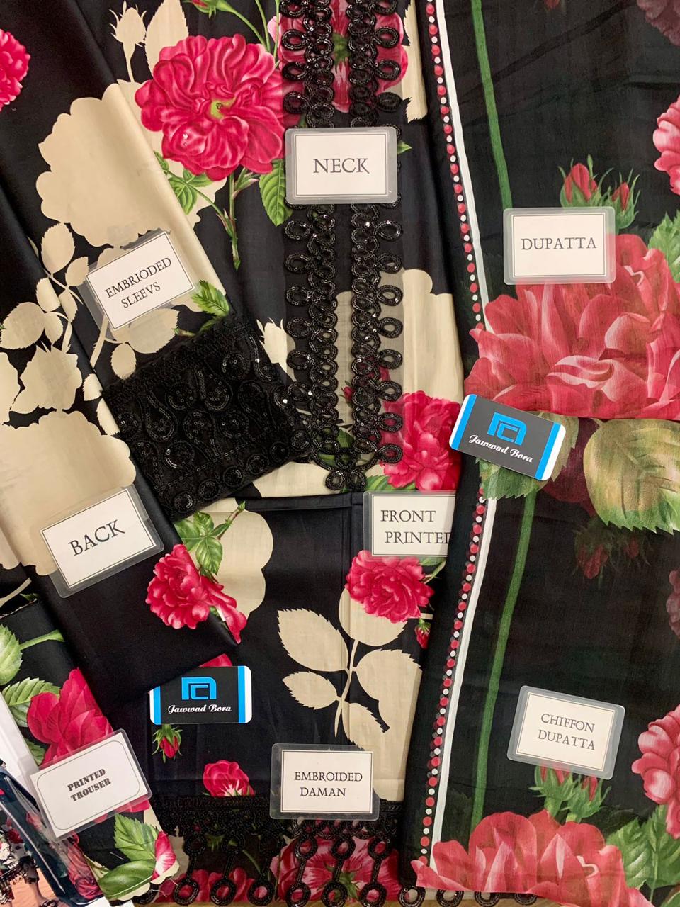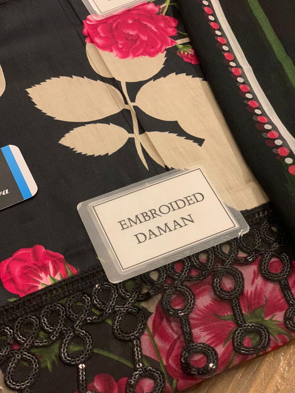 *Printed Lawn Front With Heavy Embroidered Spengle Work Neckline With Embroidered Spengle Work*
