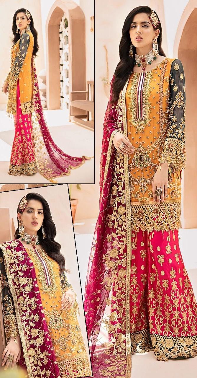 Front Fully Embroidered On Chiffon Fabric With Handwork Heavy Embroidered Neck With Handwork And Sequins Work With Heavy Embroidered Daman Patch