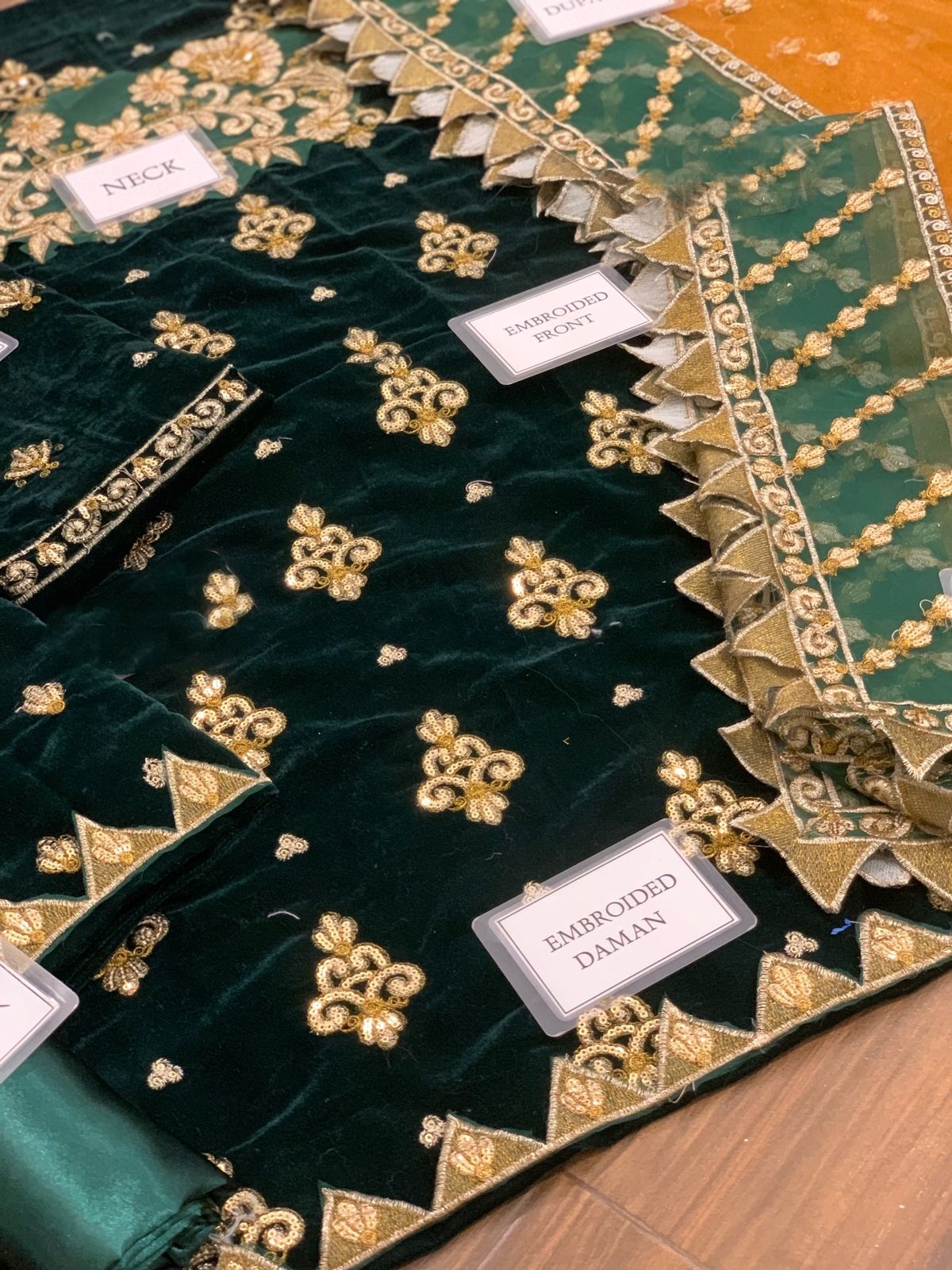 Eman Adeel Velvet Embroidered Suit With Net Embroidered Dupatta