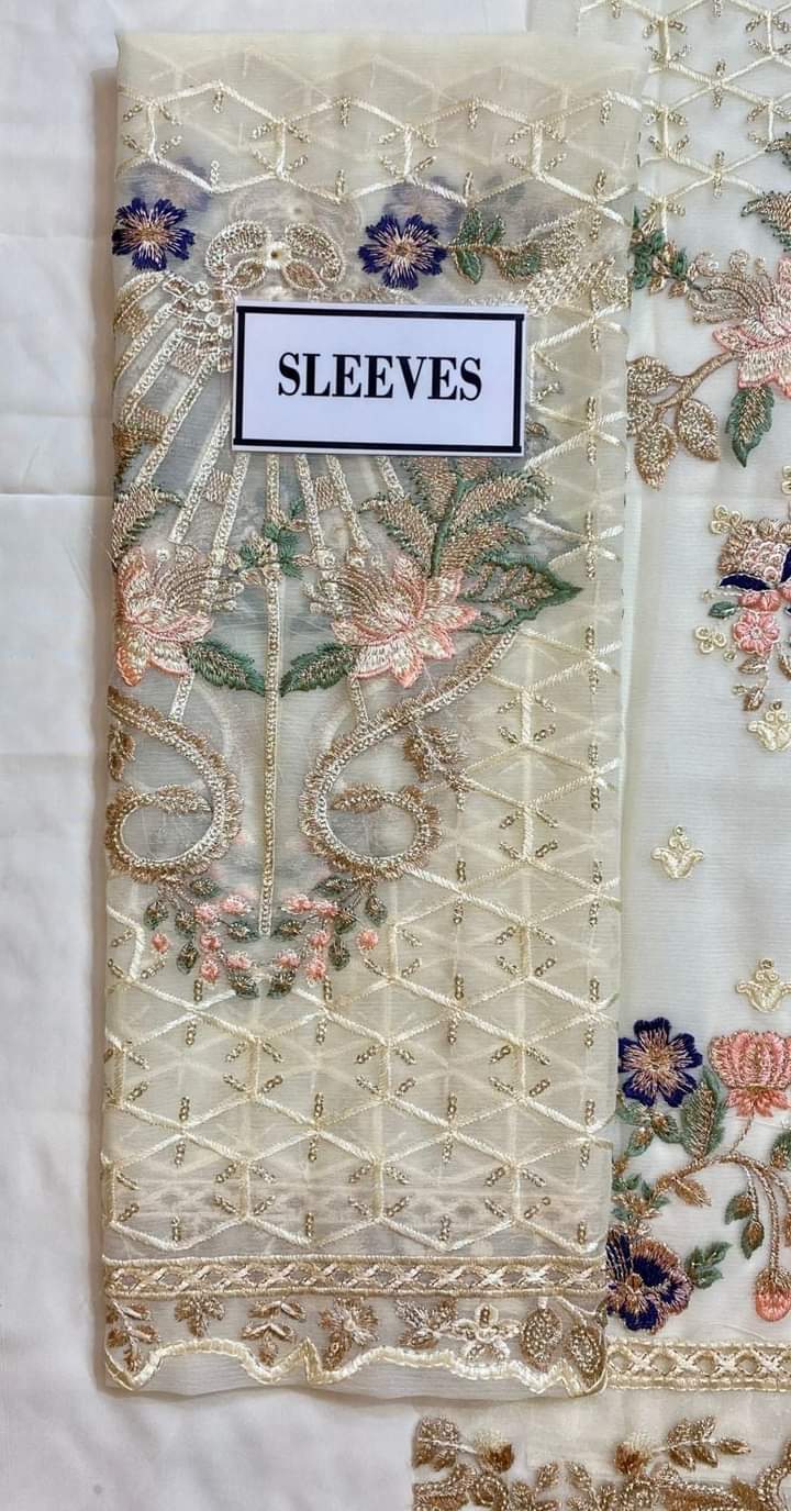 Semi pure chiffon embroidered sleeves.