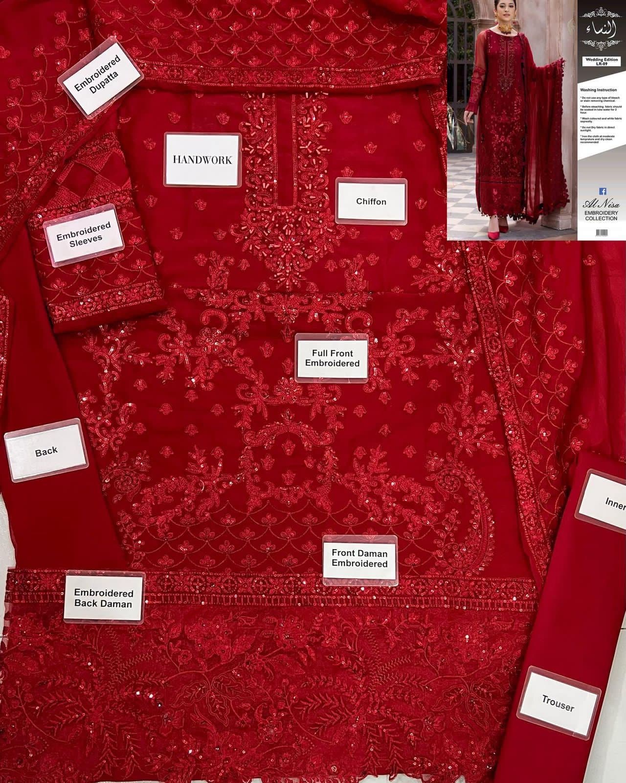 •Full Embroidered Chiffon Front Including Handwork