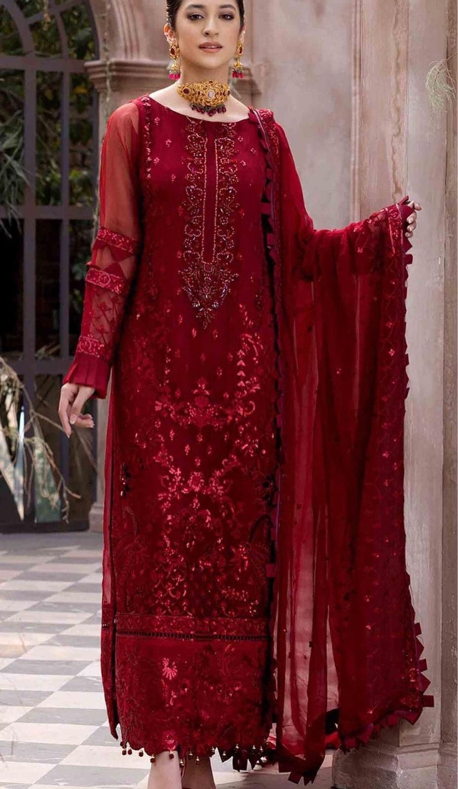 •Embroidered Chiffon Dupatta