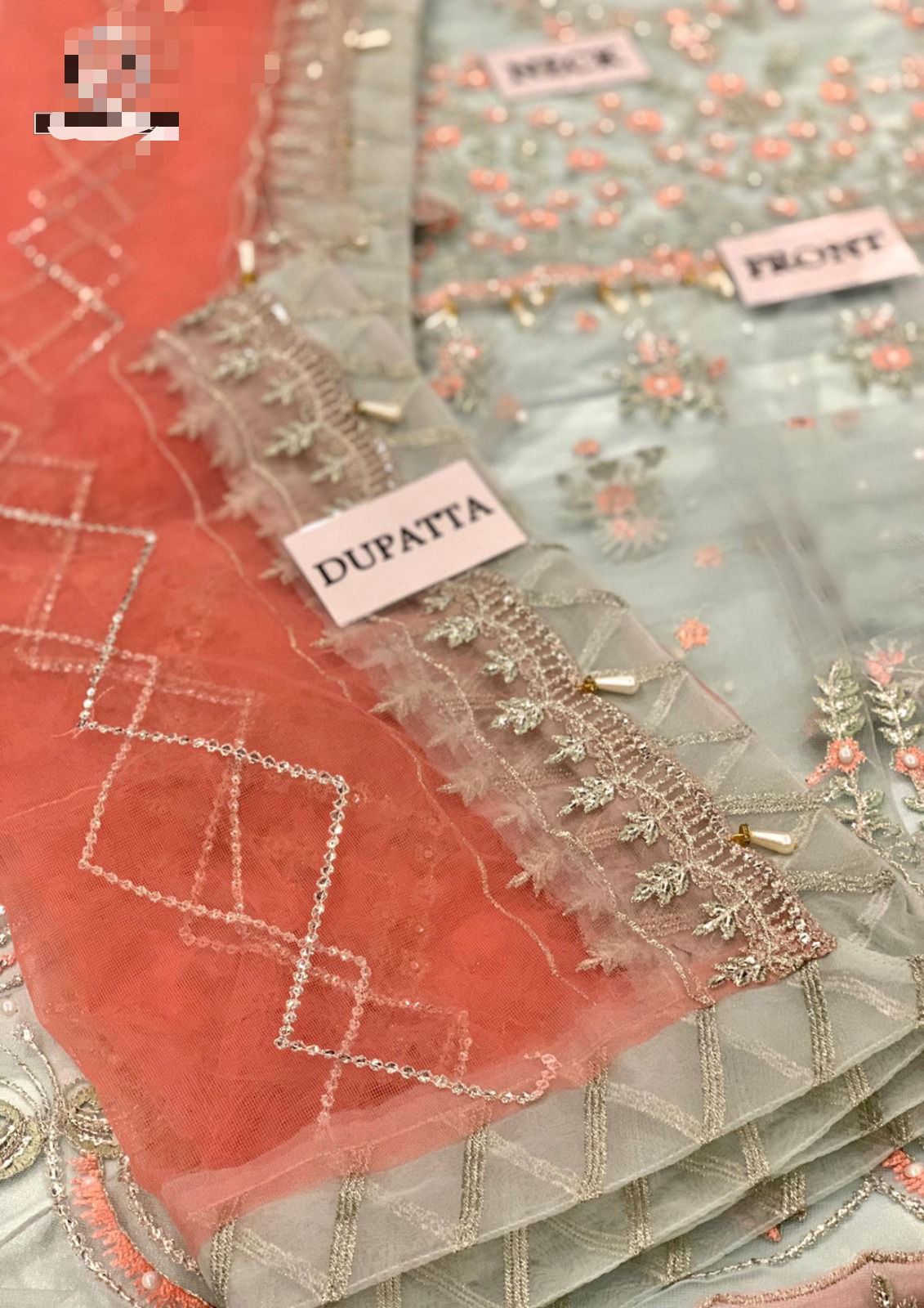 *net fully heavy embroidered spengle work back with embroidered spengle work daman boarder*