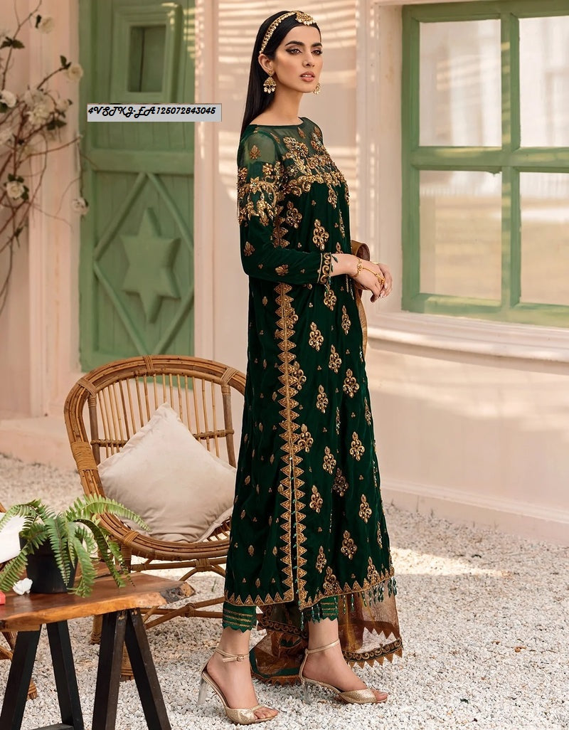 EMAN ADEEL Velvet Embroidery Suit Net Embroidary Dupatta