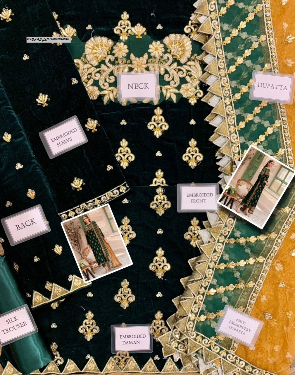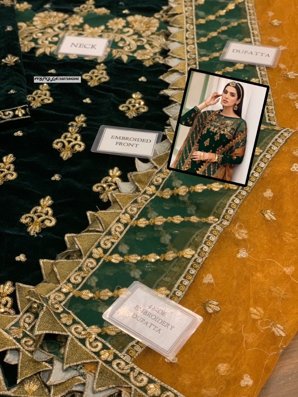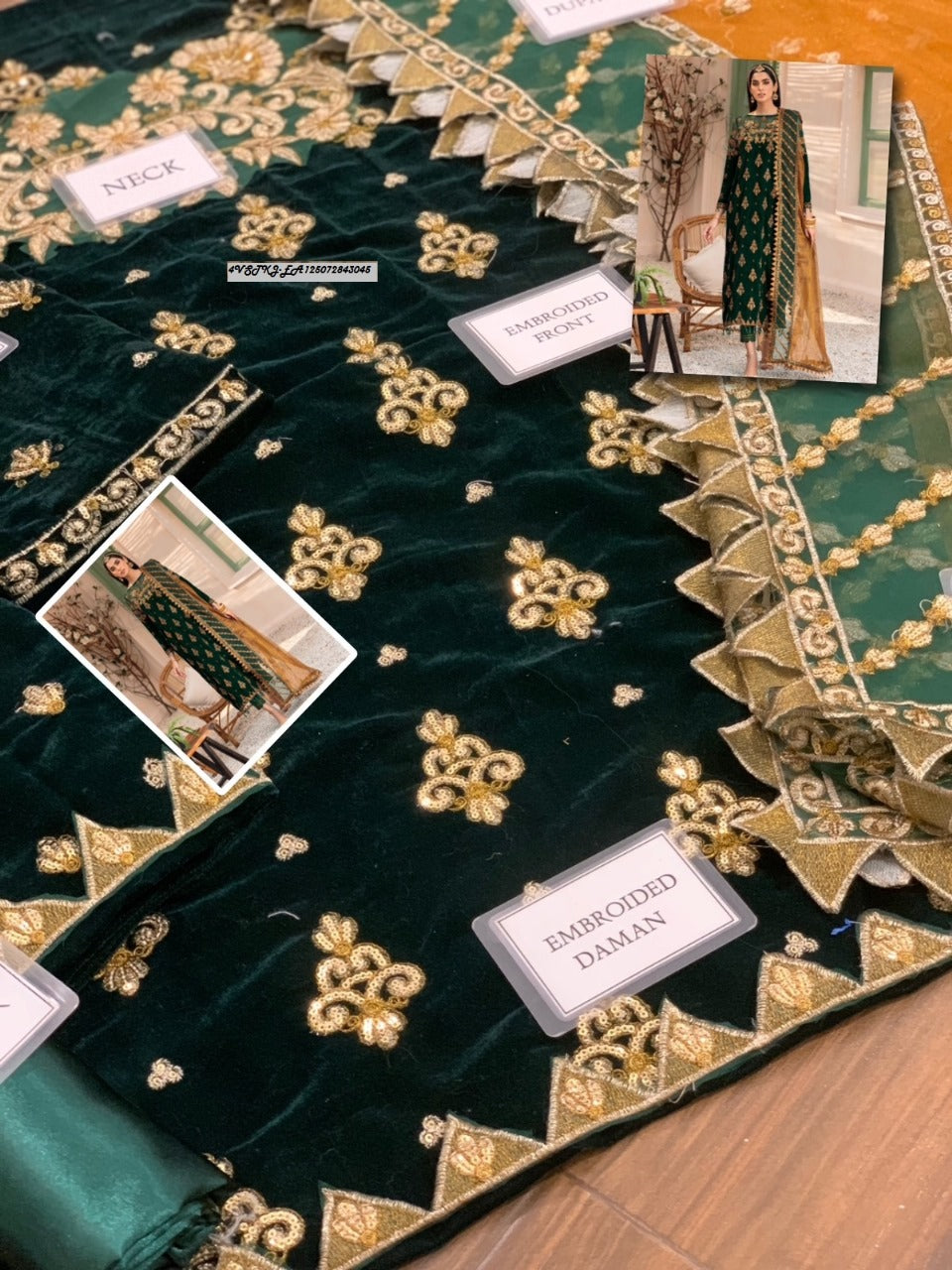 *EMAN ADEEL Velvet Embroidery Suit Net Embroidary Dupatta*