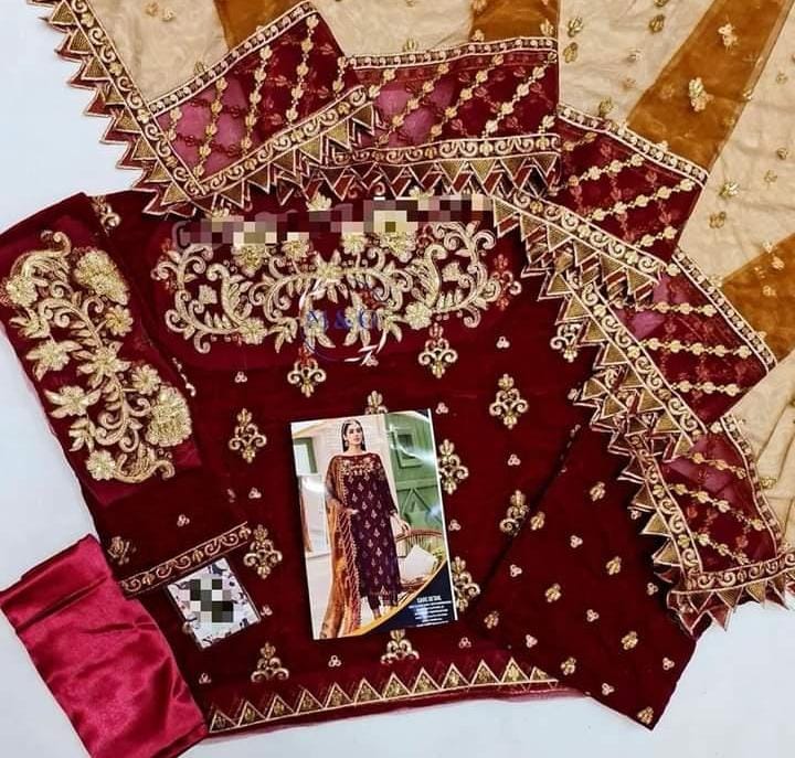 Eman Adeel Velvet Embroidery Suit Net Embroidary Dupatta
