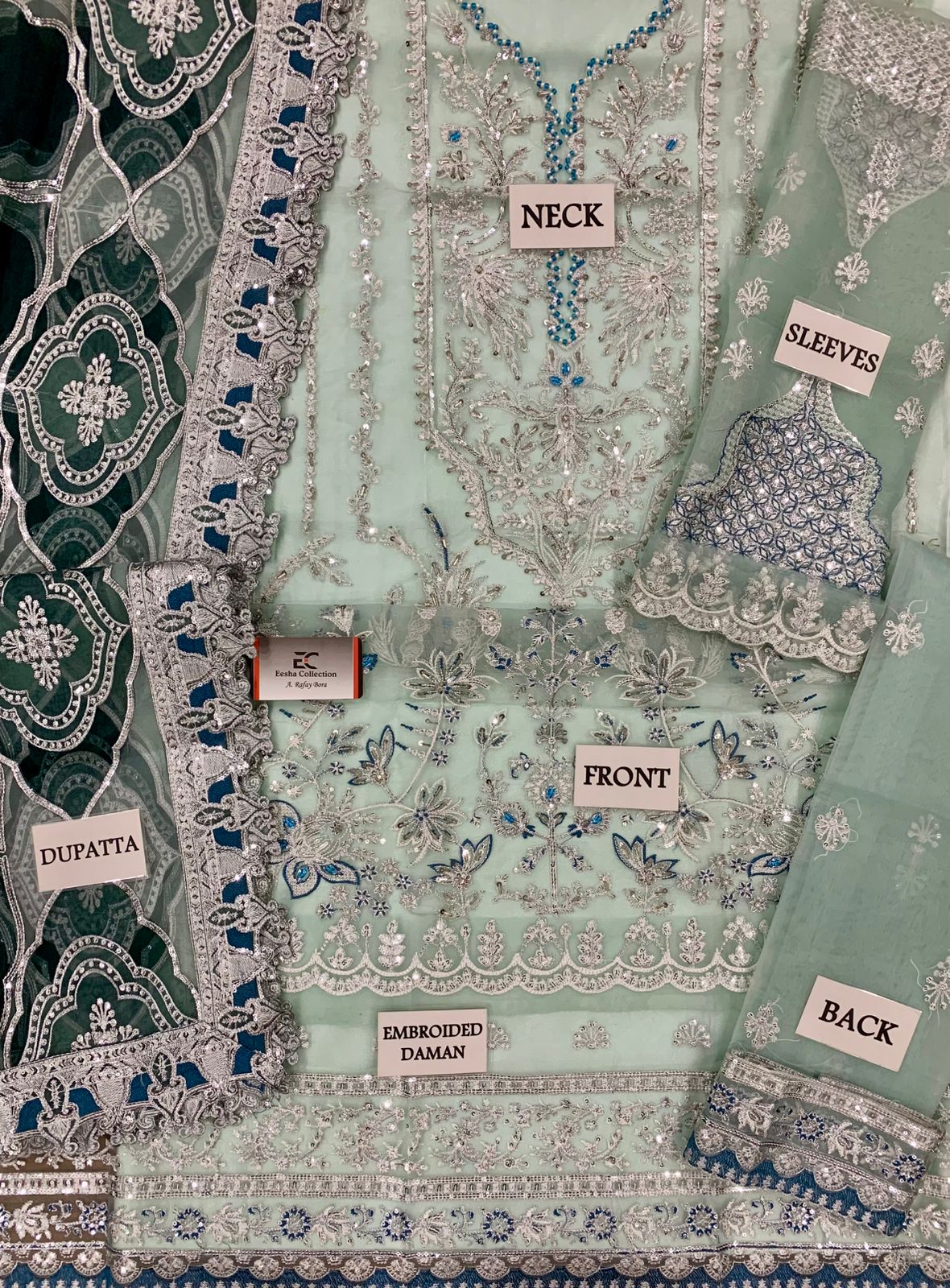 *Fully Embroidered organze back with heavy embroidered spengle work back daman boarder*