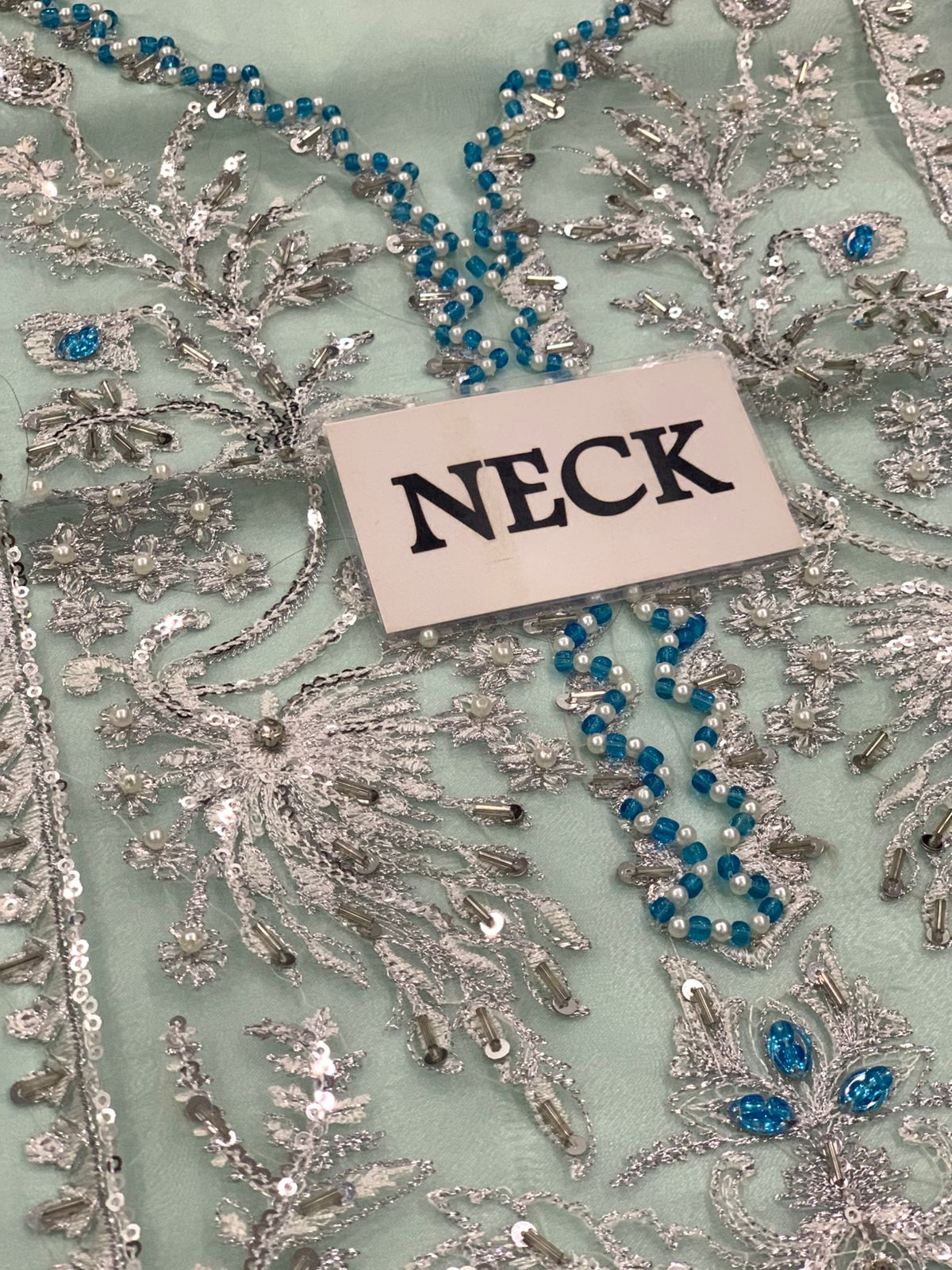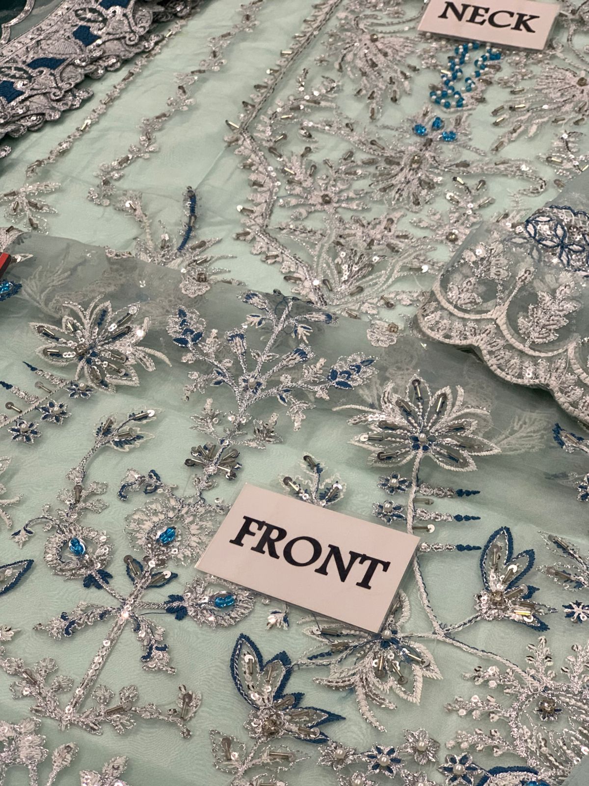 *organze fully heavy alternet embroidered spengle work front with fully heavy hand emblishment adha & crystal work front with heavy embroidered spengle work daman boarder with heavy embroidered spengle work neckline on fabric fully heavy hand emblishment adha work*