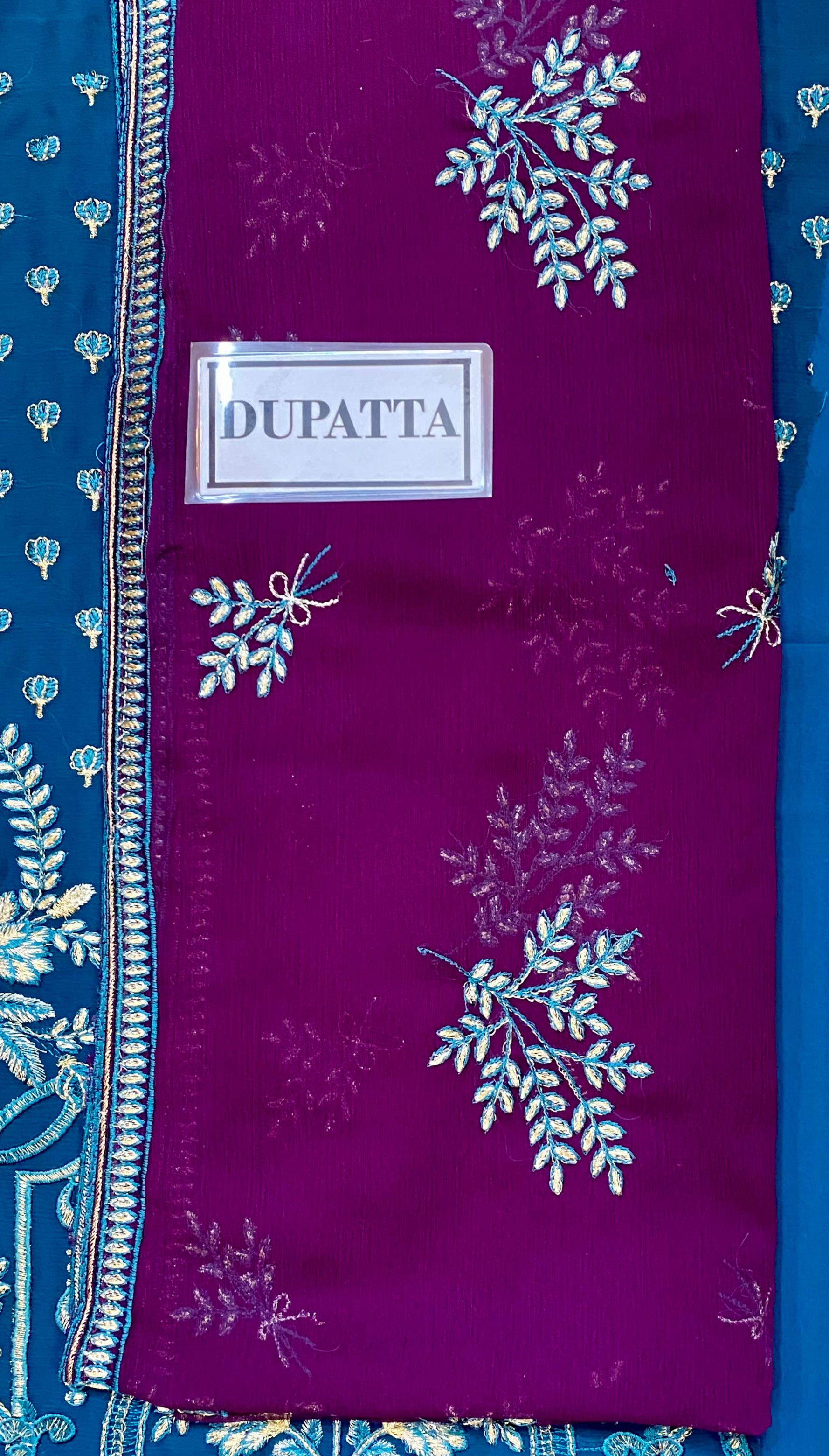 Semi pure chiffon embroidered dupatta with 4 sides border.