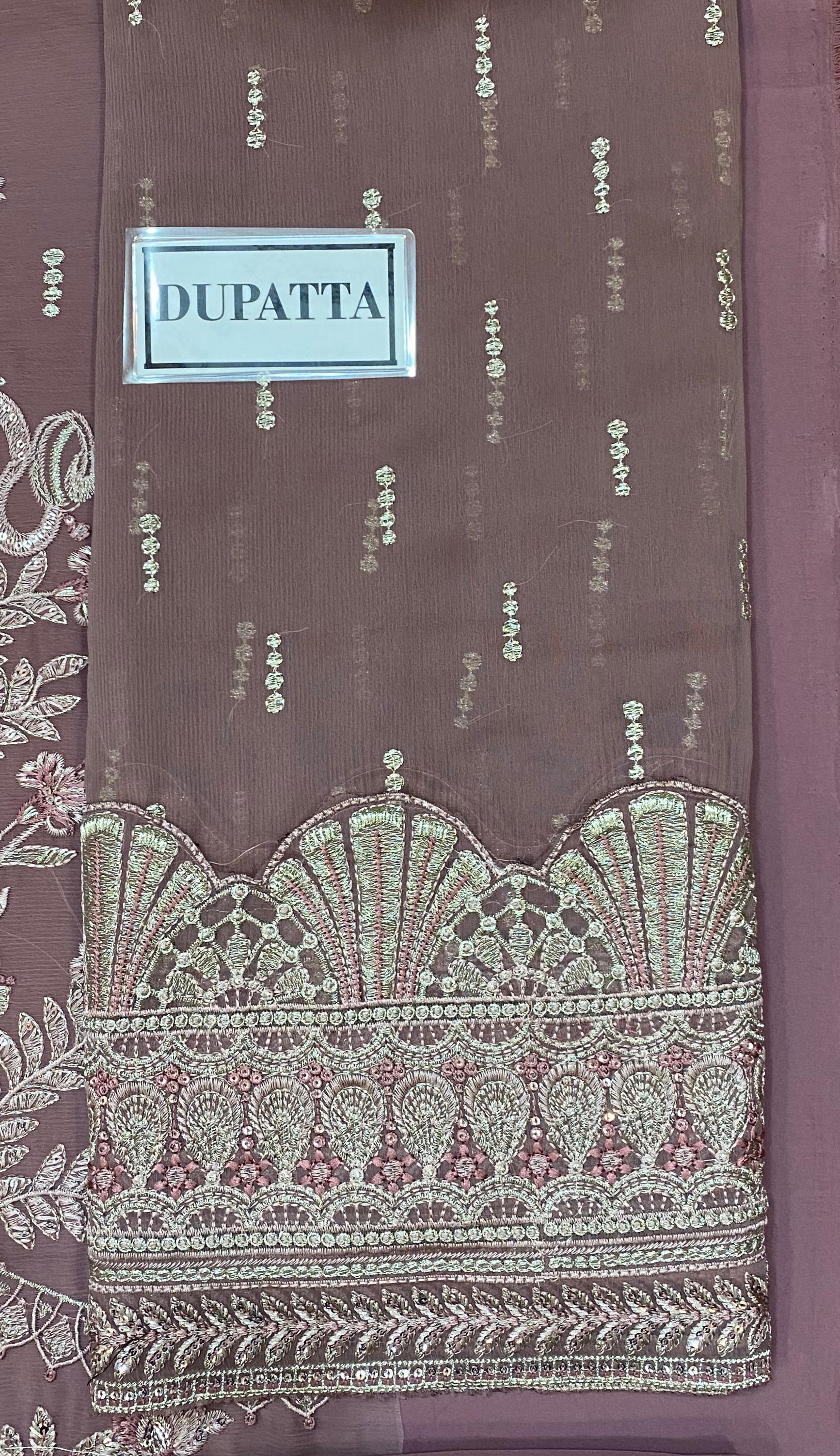 Semi pure chiffon embroidered dupatta with heavy pallu embroidered.