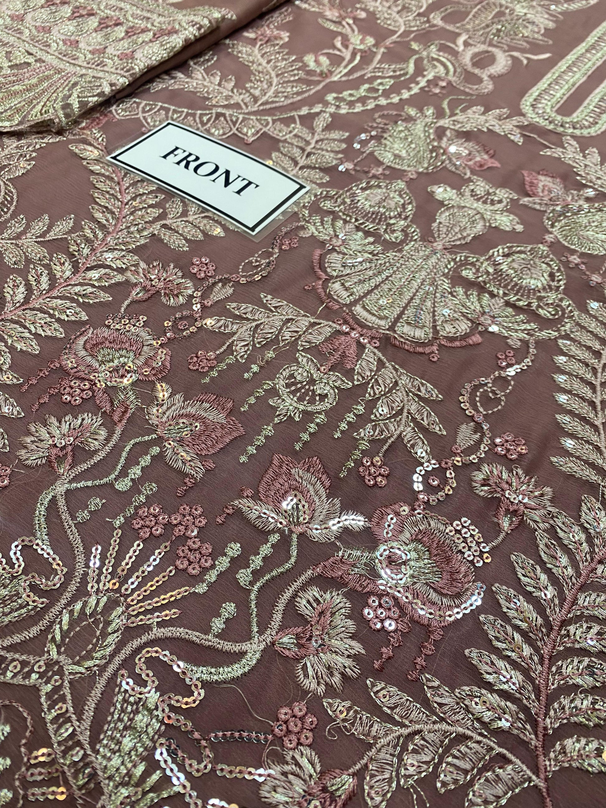 Semi pure chiffon embroidered front.