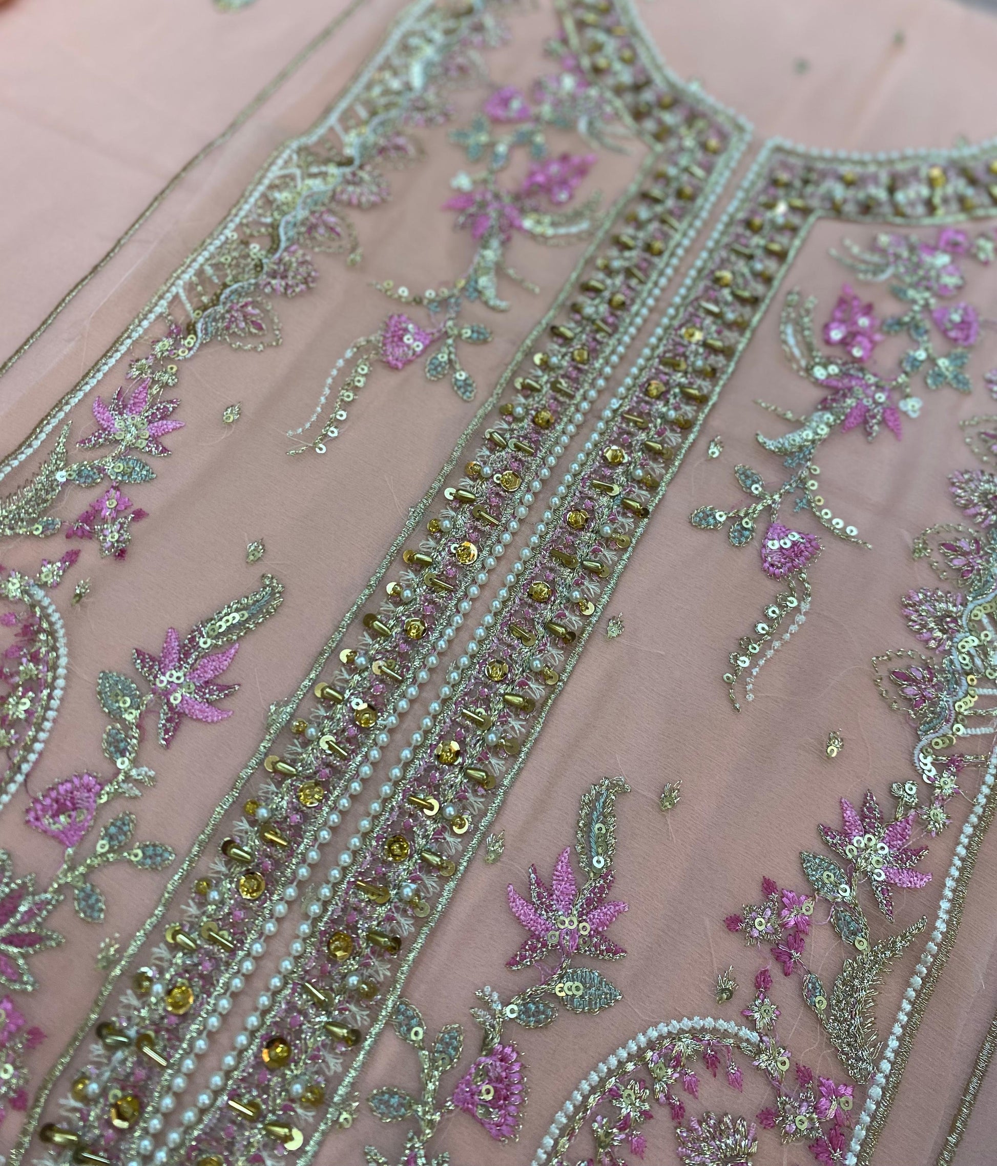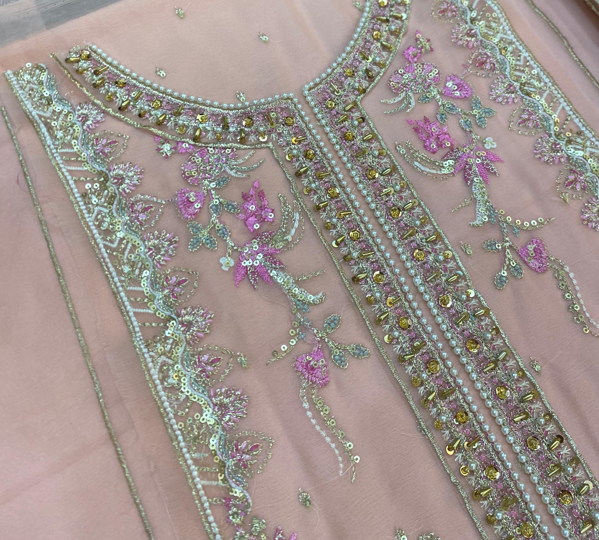 Embroidered & Sequinned Chiffon Center Panel for Front.