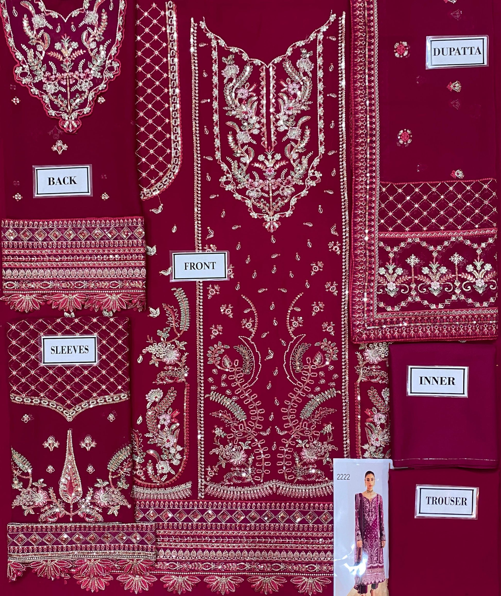 Embroidered chiffon dupatta Embroidered organza 4 Sides border with Bunches attached.