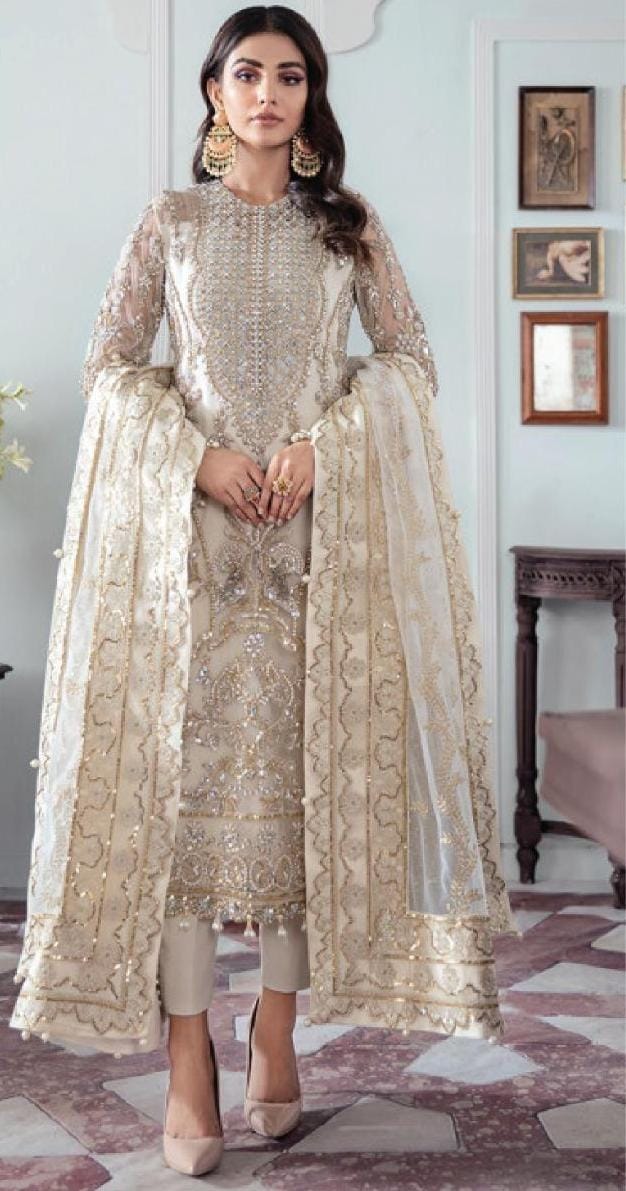 *Fully Sequence Embroidered Front With Handwork & Adda Work Pearls Emb Daman Along With Hanging Tussels On Daman*