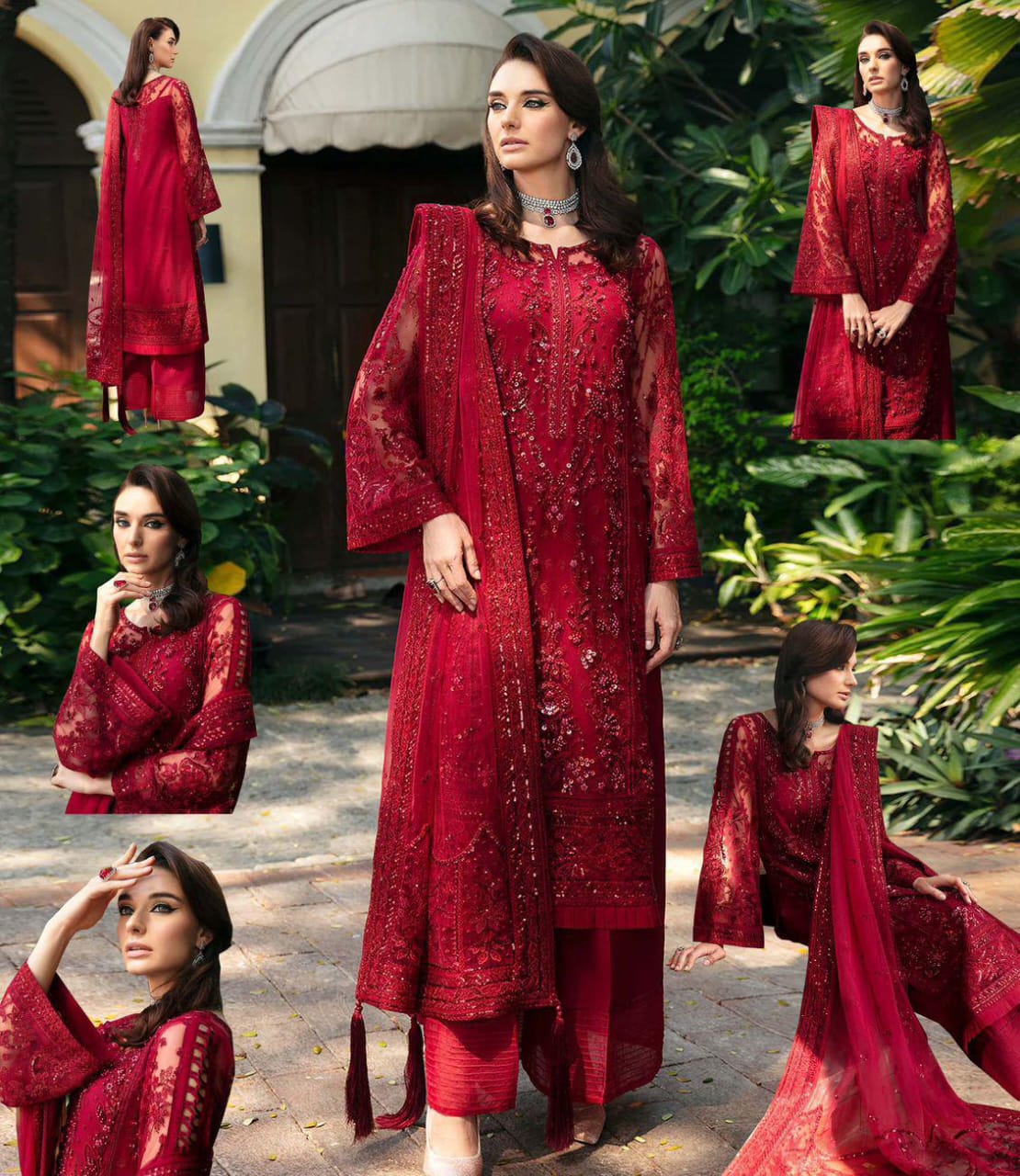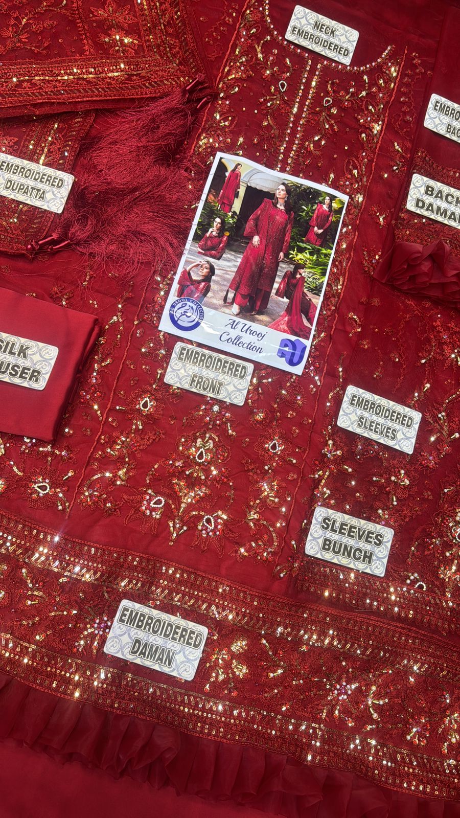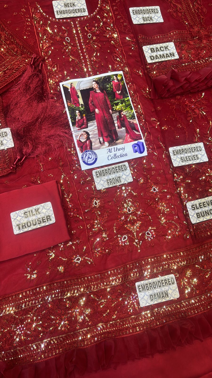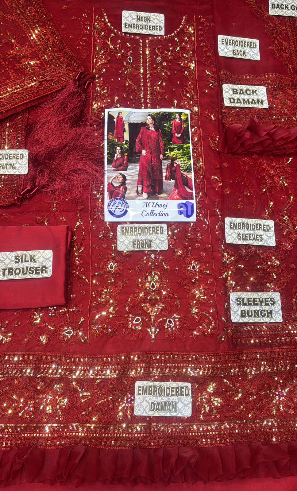 Fully sequence embroidered front on Net fabric with heavy Adda work