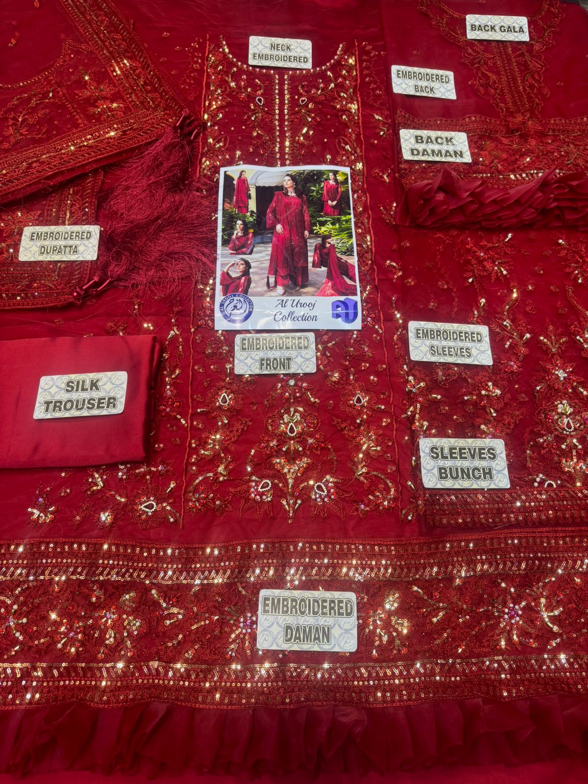 Sequence embroidered back with embroidered Organza Daman & sequence embroidered neck bunch on net
