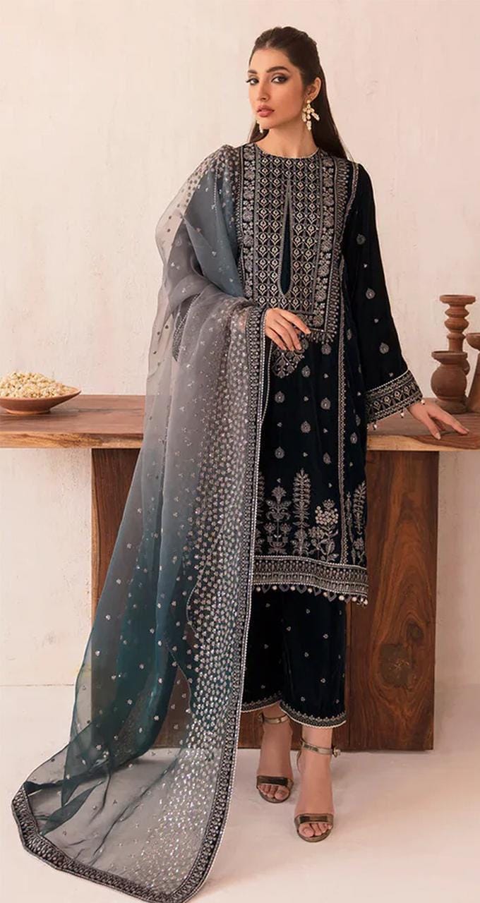 HEAVY EMBROIDERED VELVET FRONT WITH EMBROIDERED DAMAN PATCH