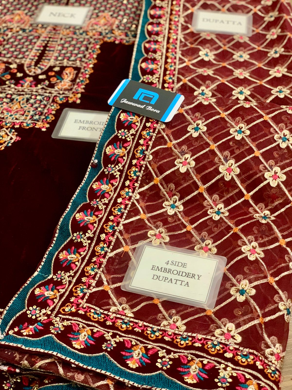 Dupatta Embroidered With 4 Side Mountain Lace Attached with tussels