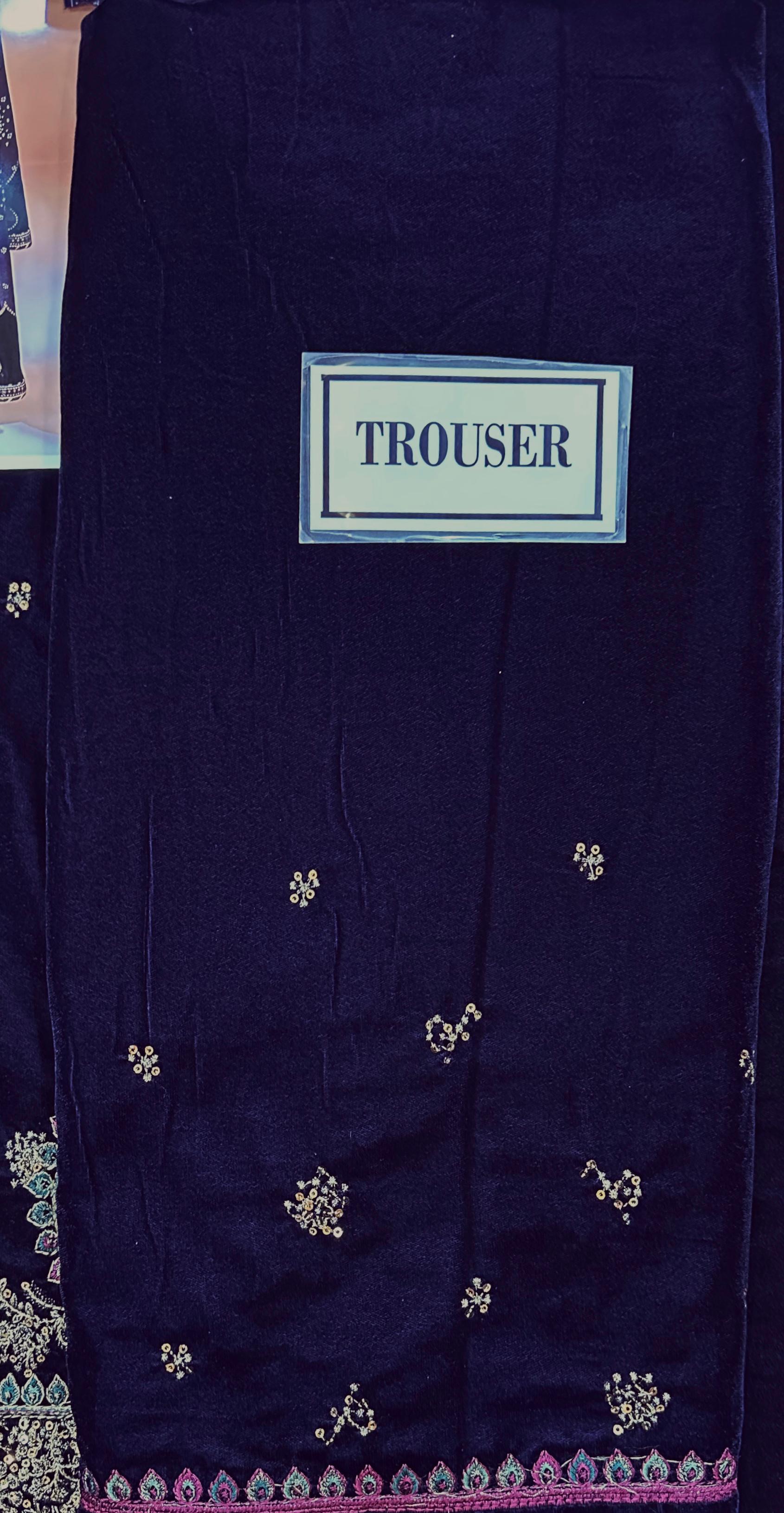 Chiffon embroidered dupatta with Embroidered Velvet Pallu
