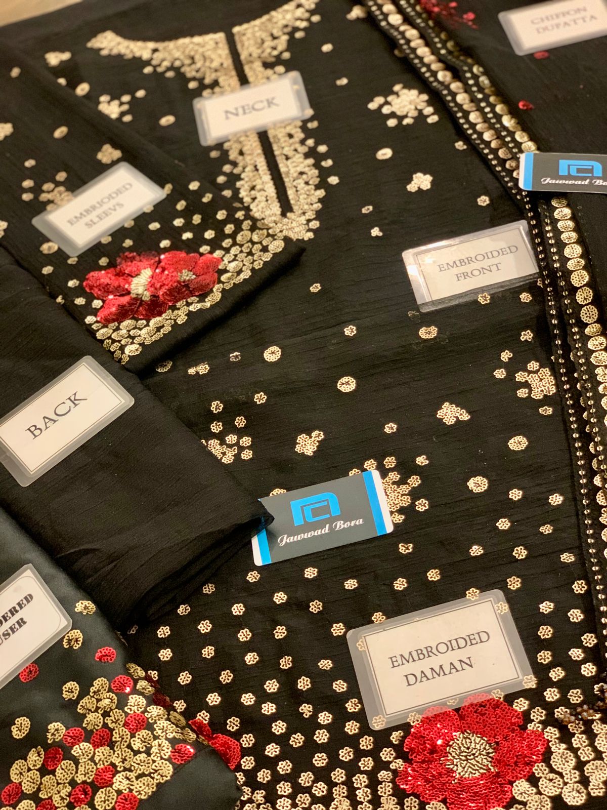 chiffon fully heavy embroidered front with heavy embroidered daman boarder with heavy embroidered work chak