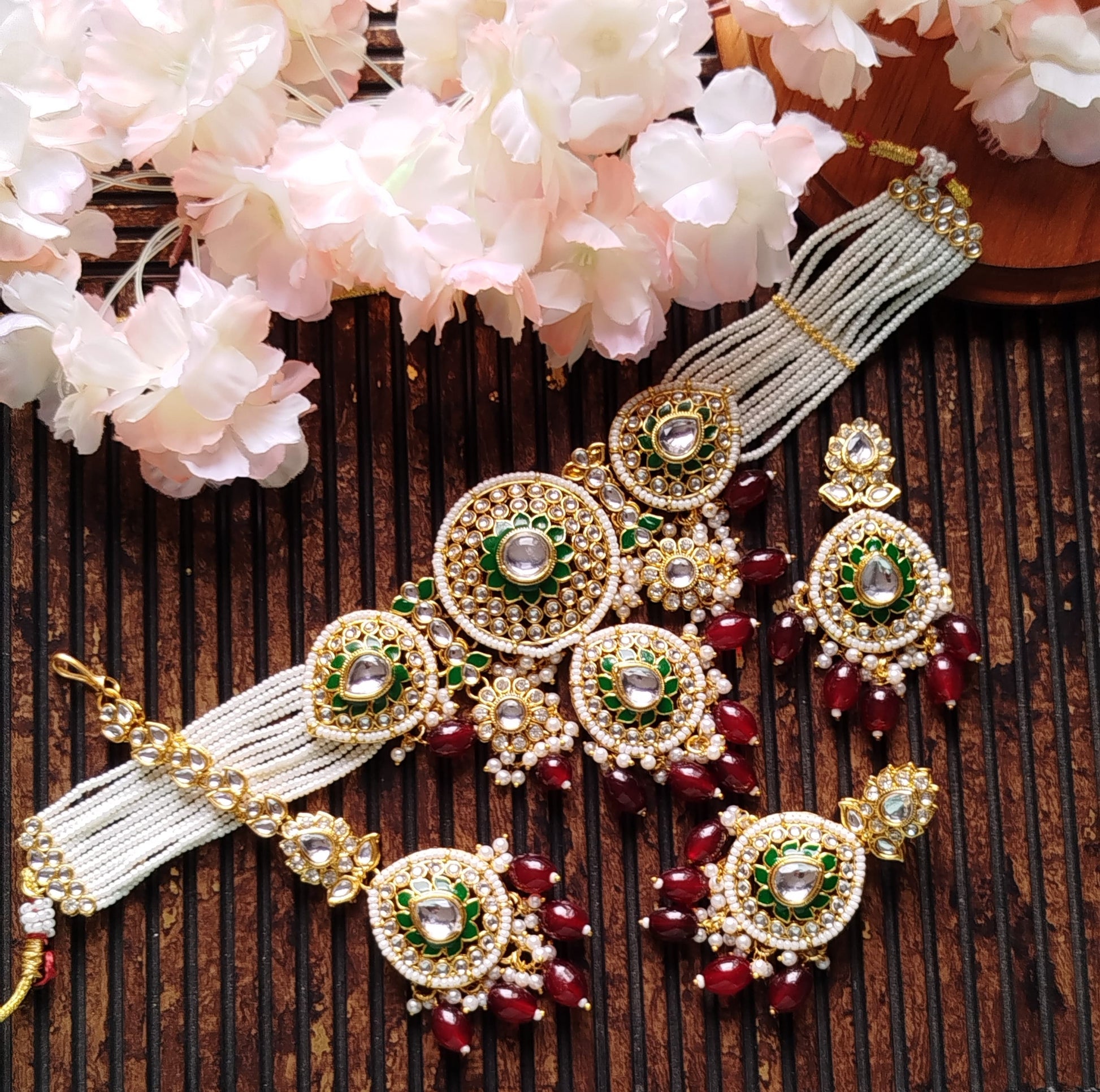 Beautiful Indian Dabbi Kundan Choker sets jhumkies with tikka