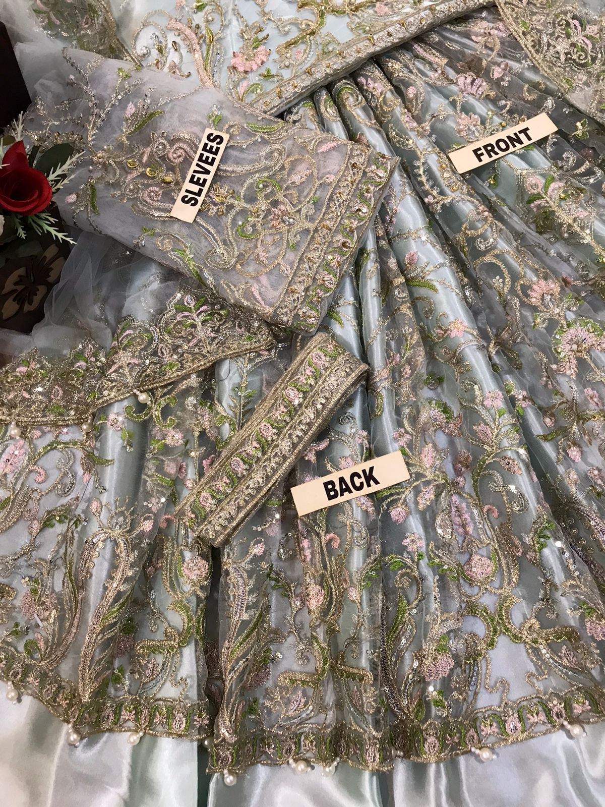 Back body embroidered and Adda Work attached Pearls