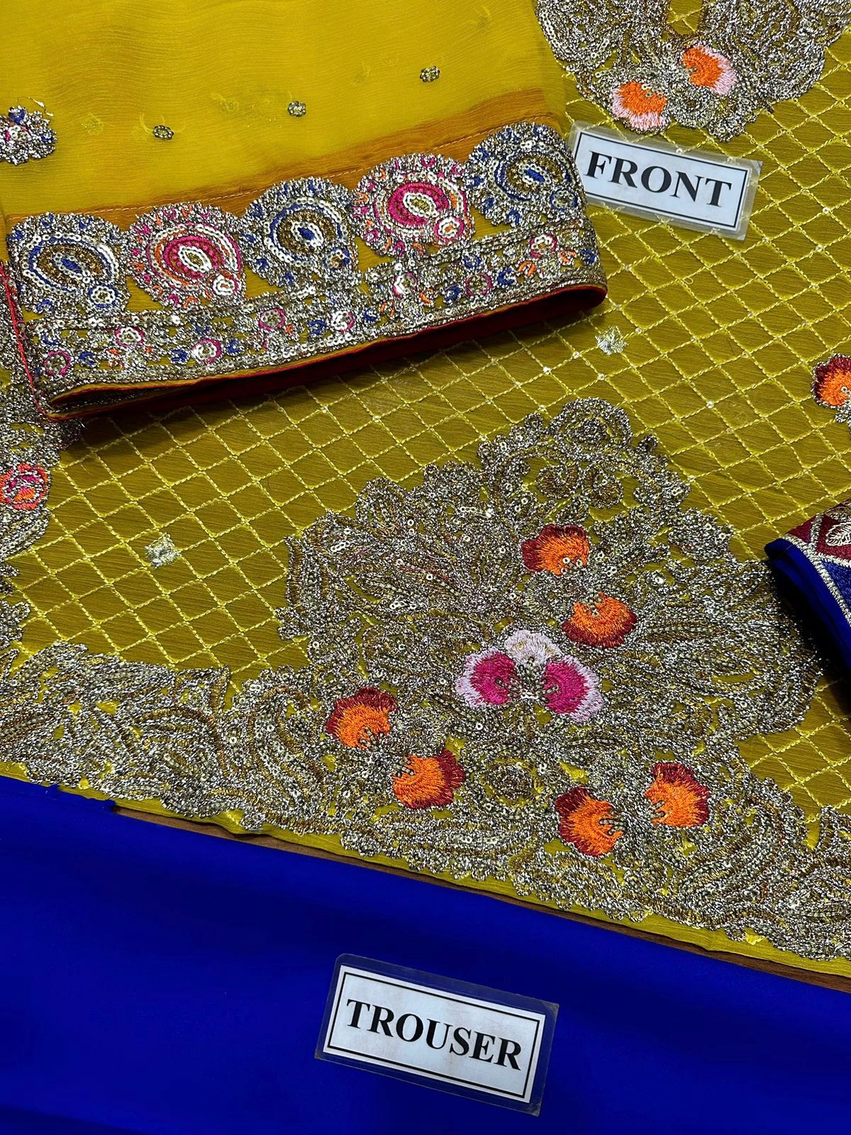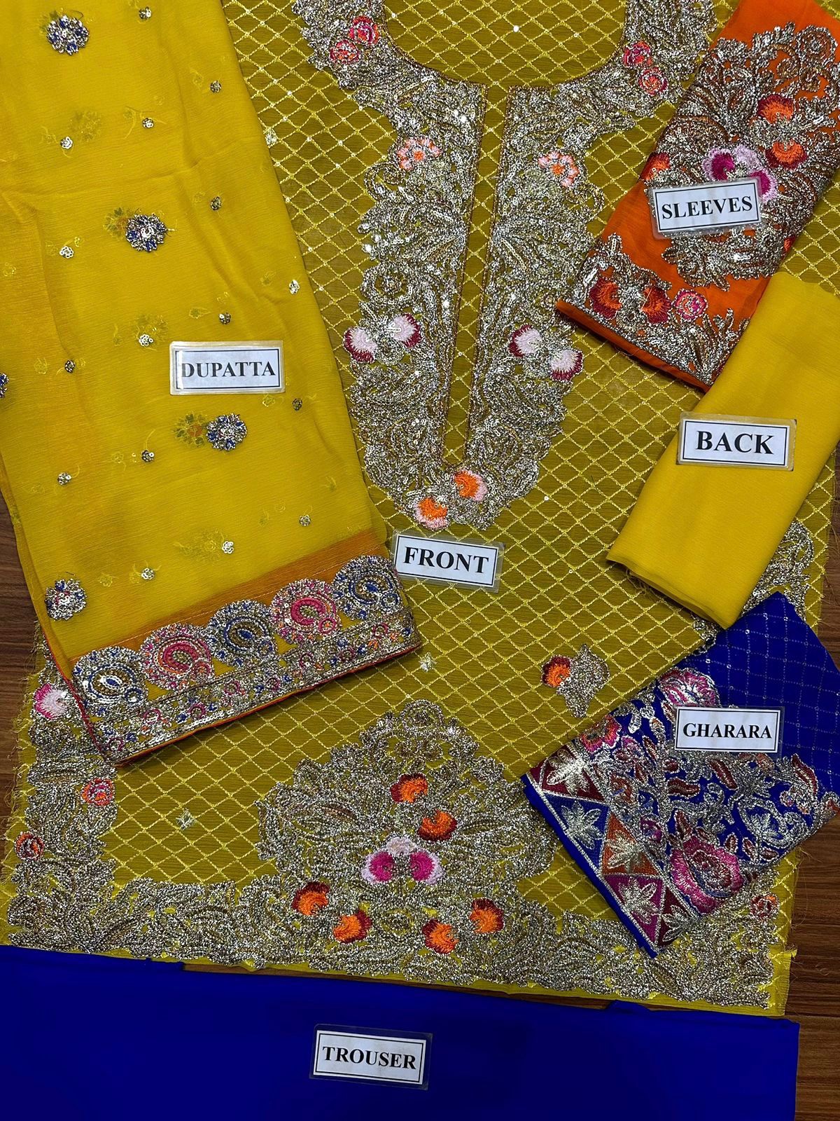 Semi Pure Chiffon Heavy Embroidered Gharara