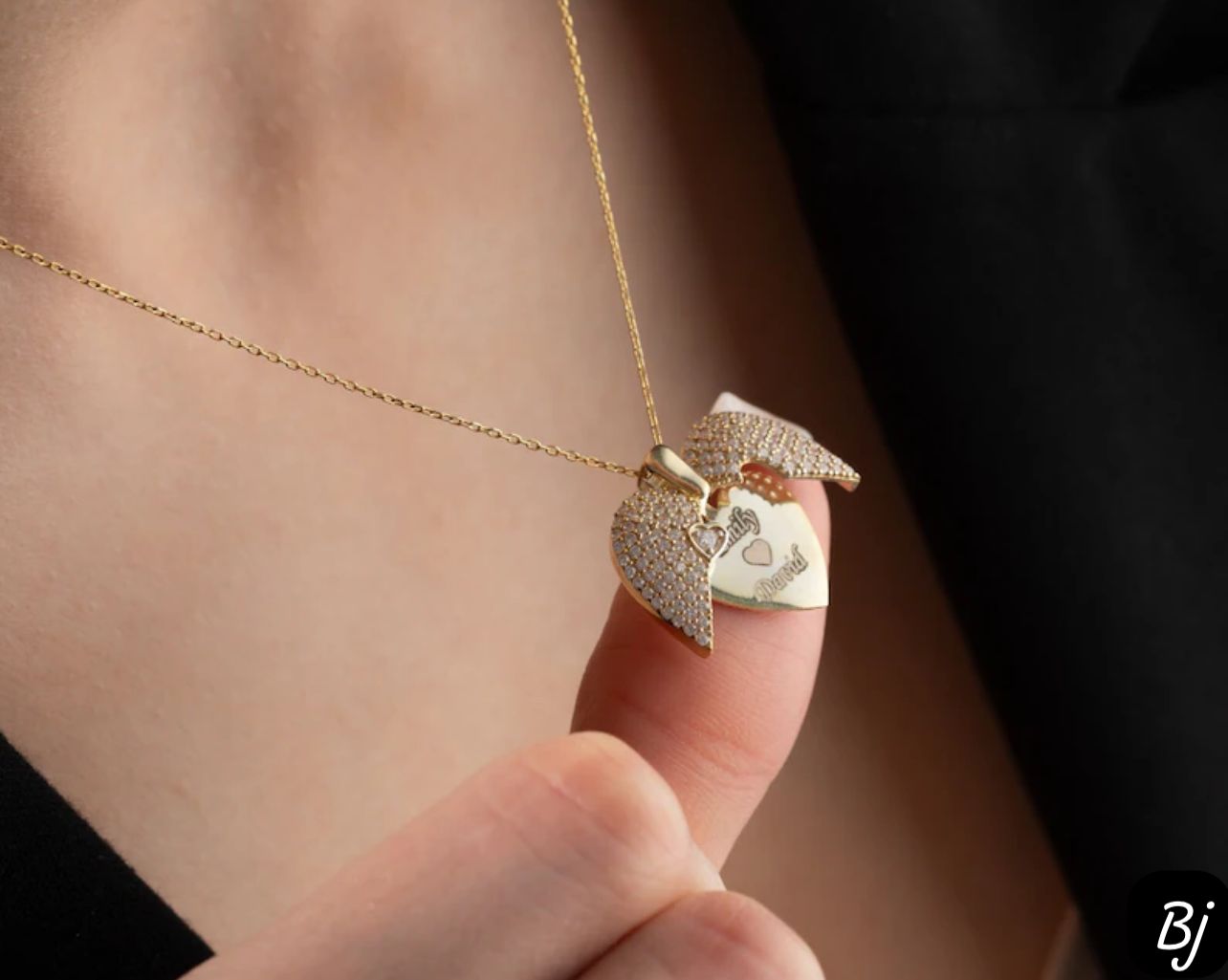 Fancy Beautiful Customized Openable Heart Angle Wings Pendants For Her