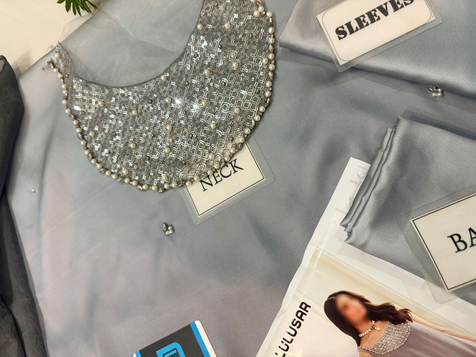 Shamoz silk shirt with heavy embroidered neck patch with complete work and adda work on fabric