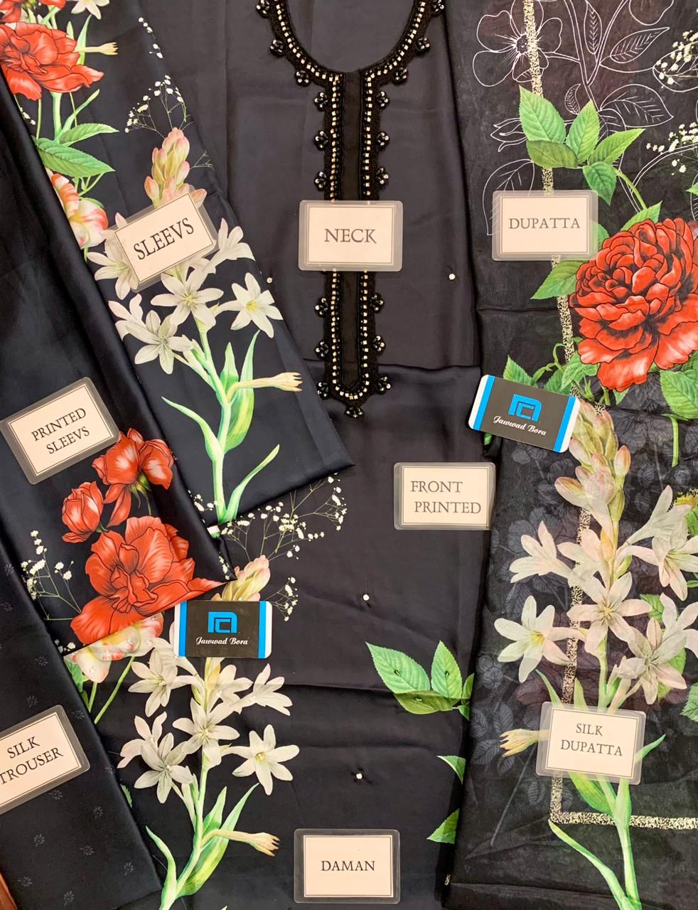 ✔️ SHAMOZ SILK DIGITAL PRINT FRONT WITH HANDWORK HANDWORK STICHED WITH THREAD NOT PASTED