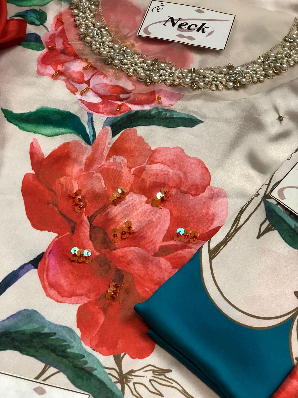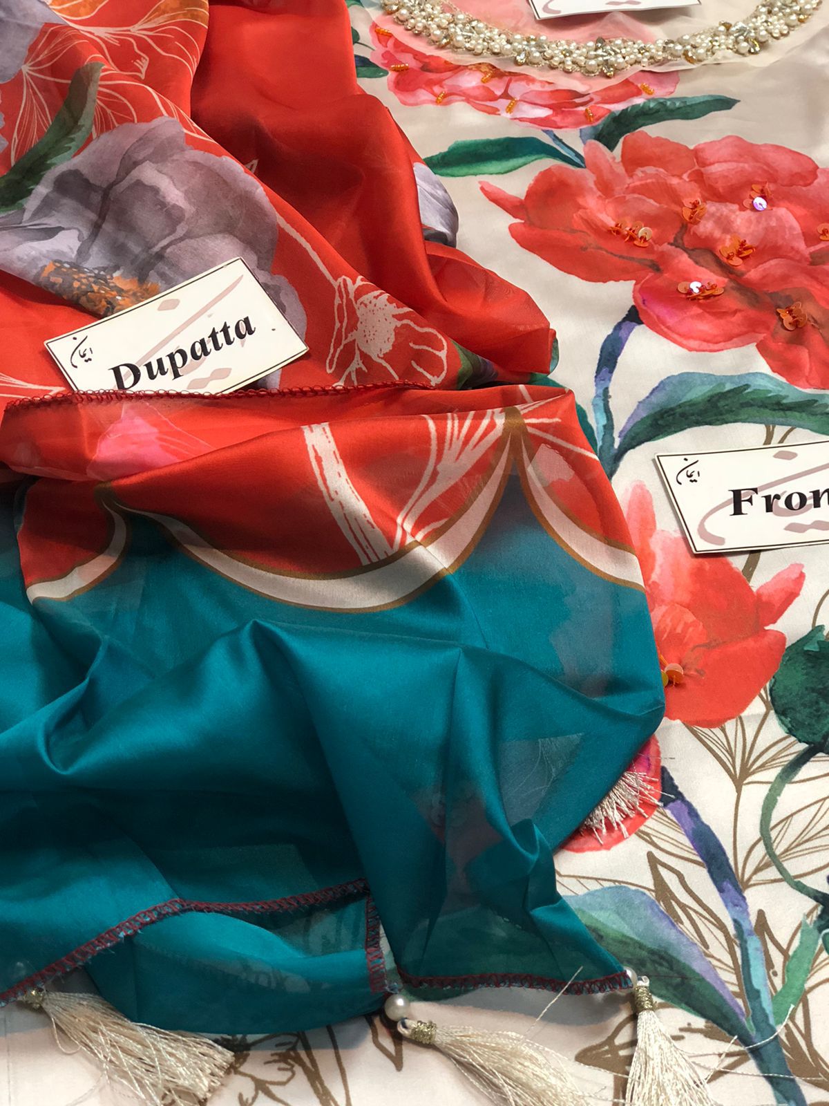 SHAMOZ SILK DIGITAL PRINT FRONT WITH HANDWORK STICHED WITH THREAD