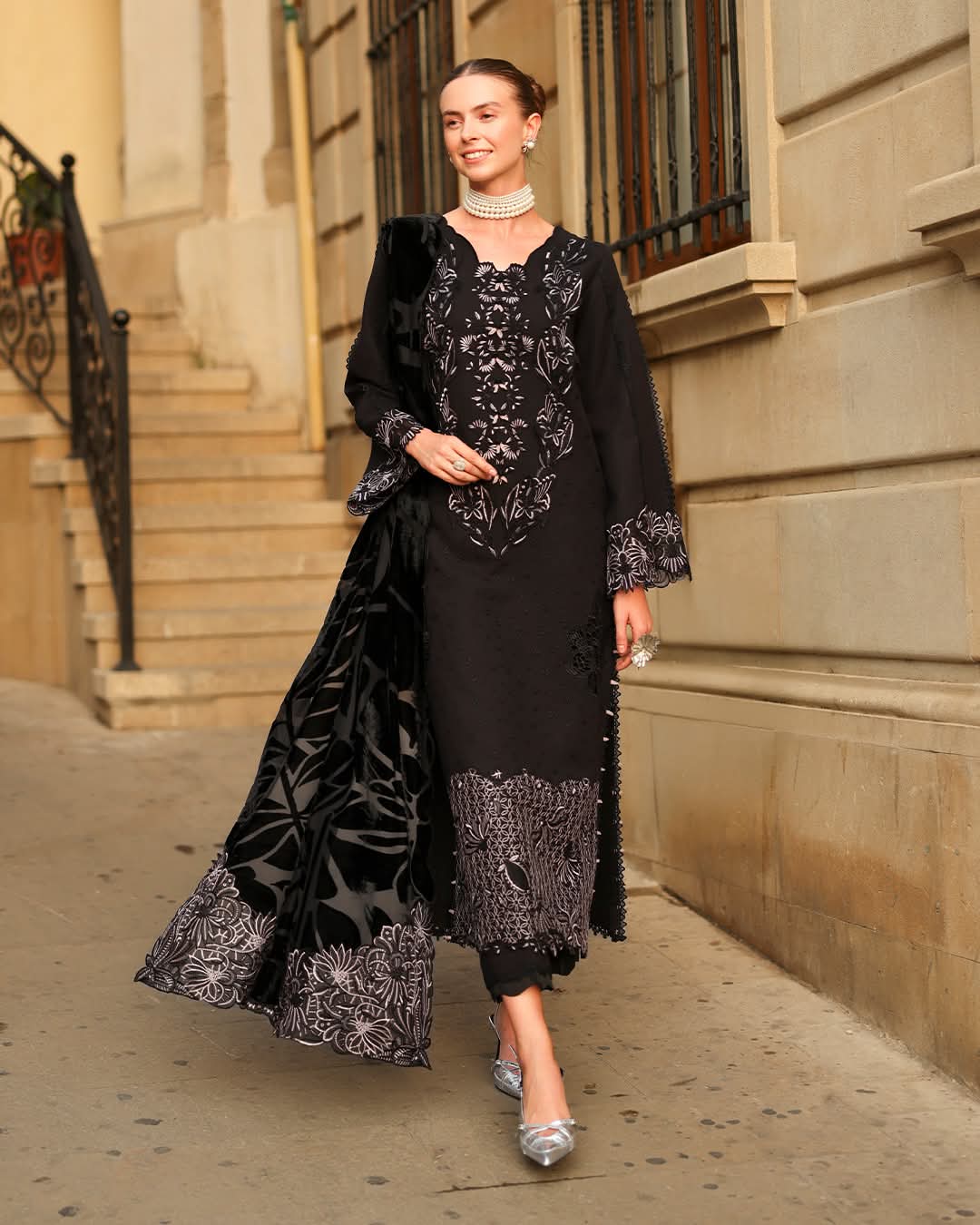 HEAVY EMBROIDERY GALA WITH STONE WORK