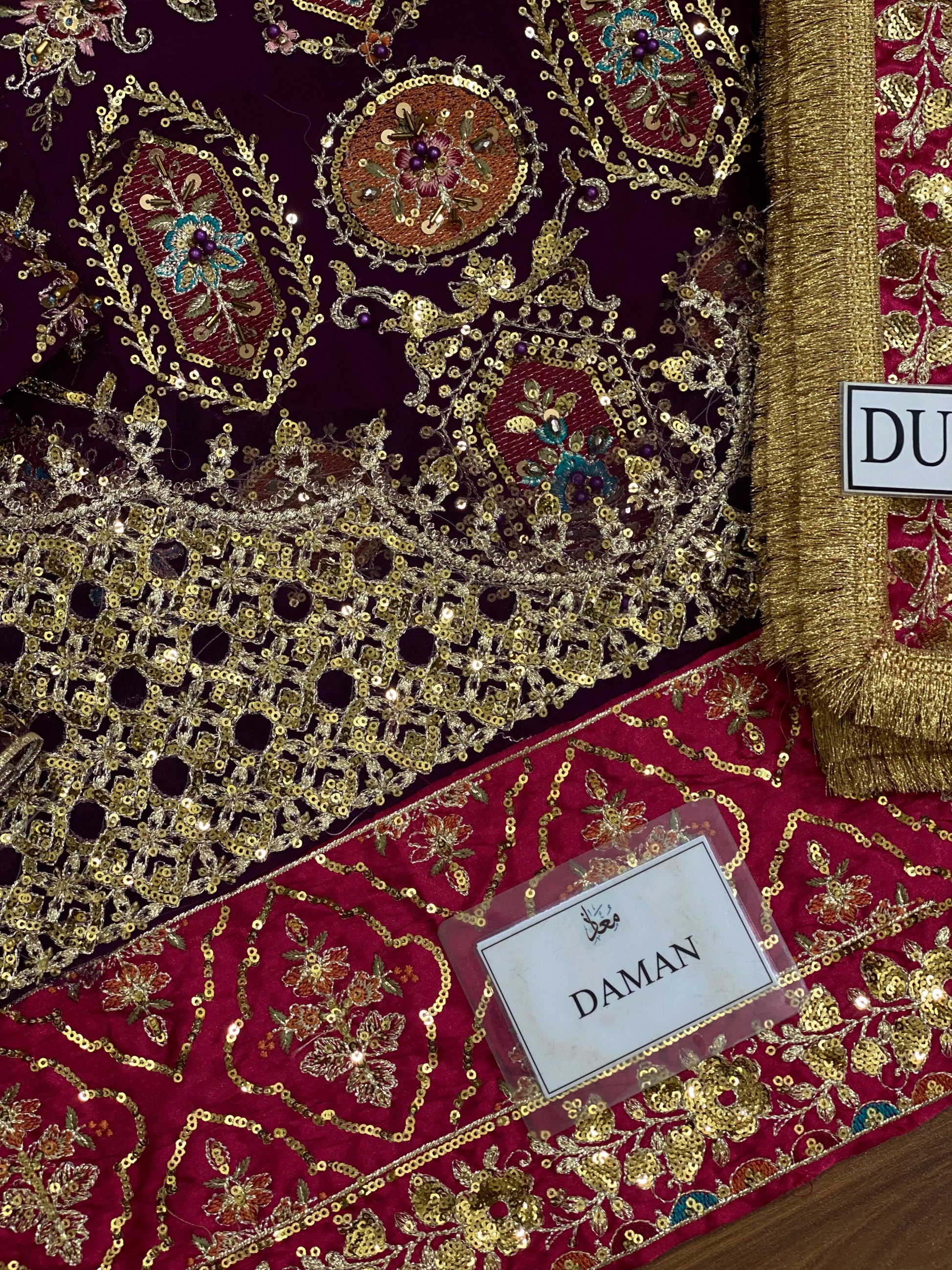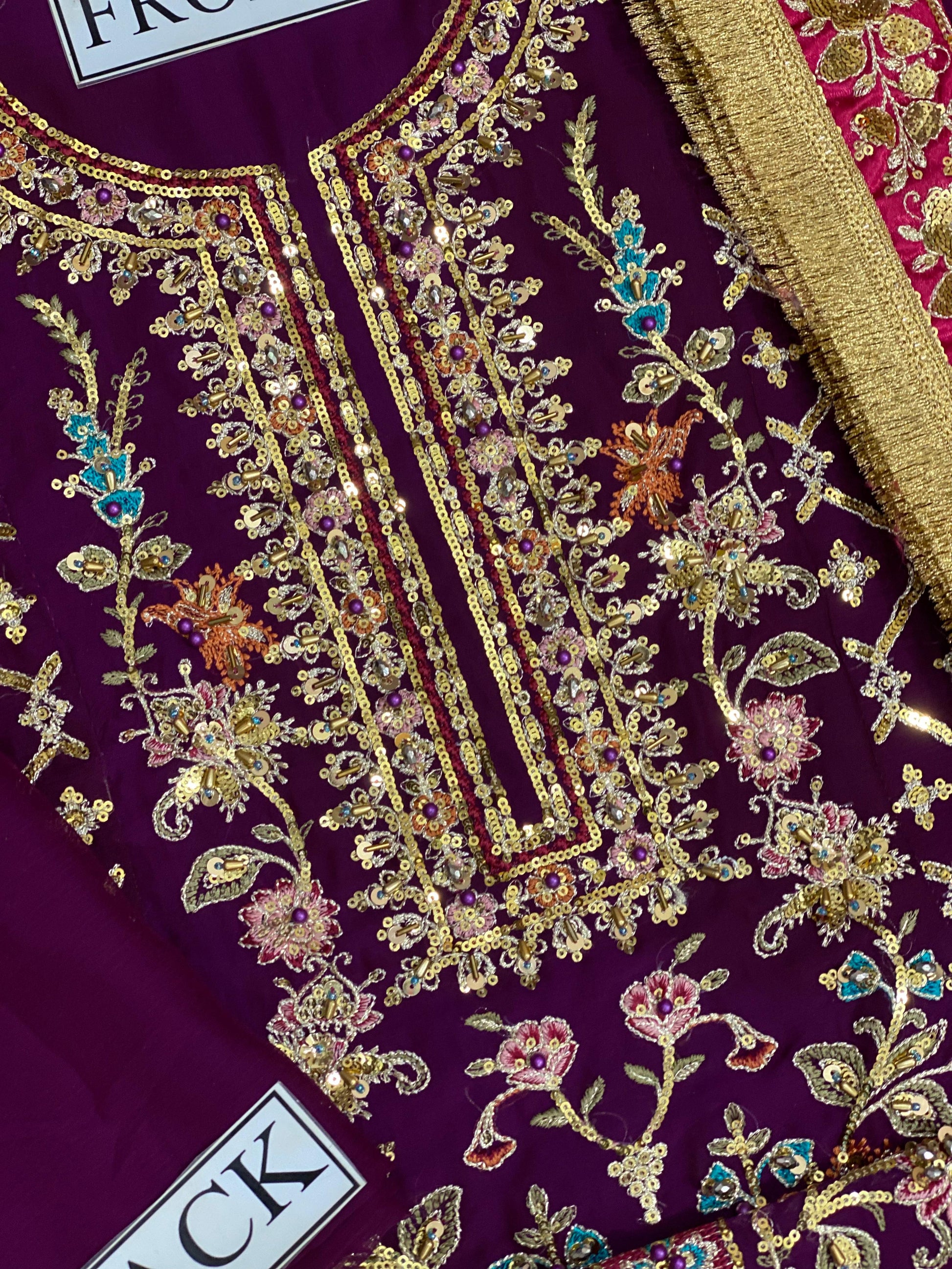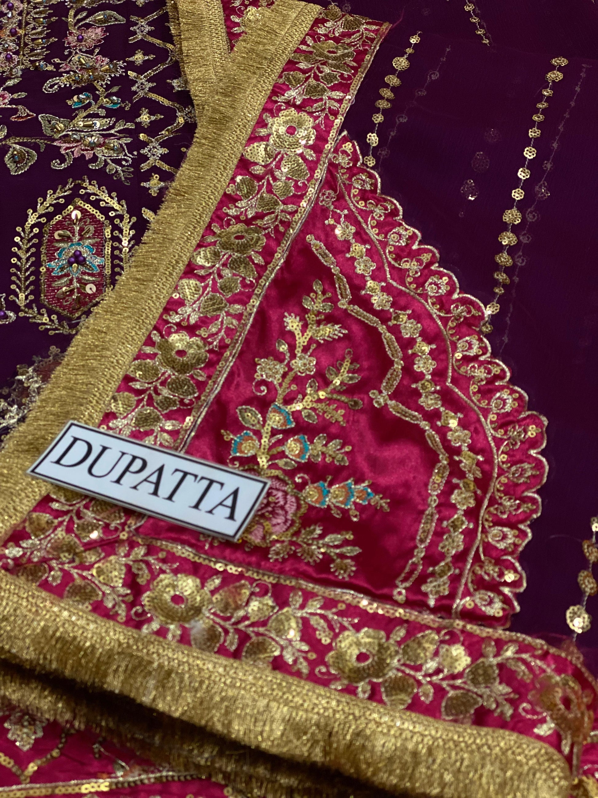 Chiffon embroided ready to wear dupatta with four sides borders on silk and four sided lace