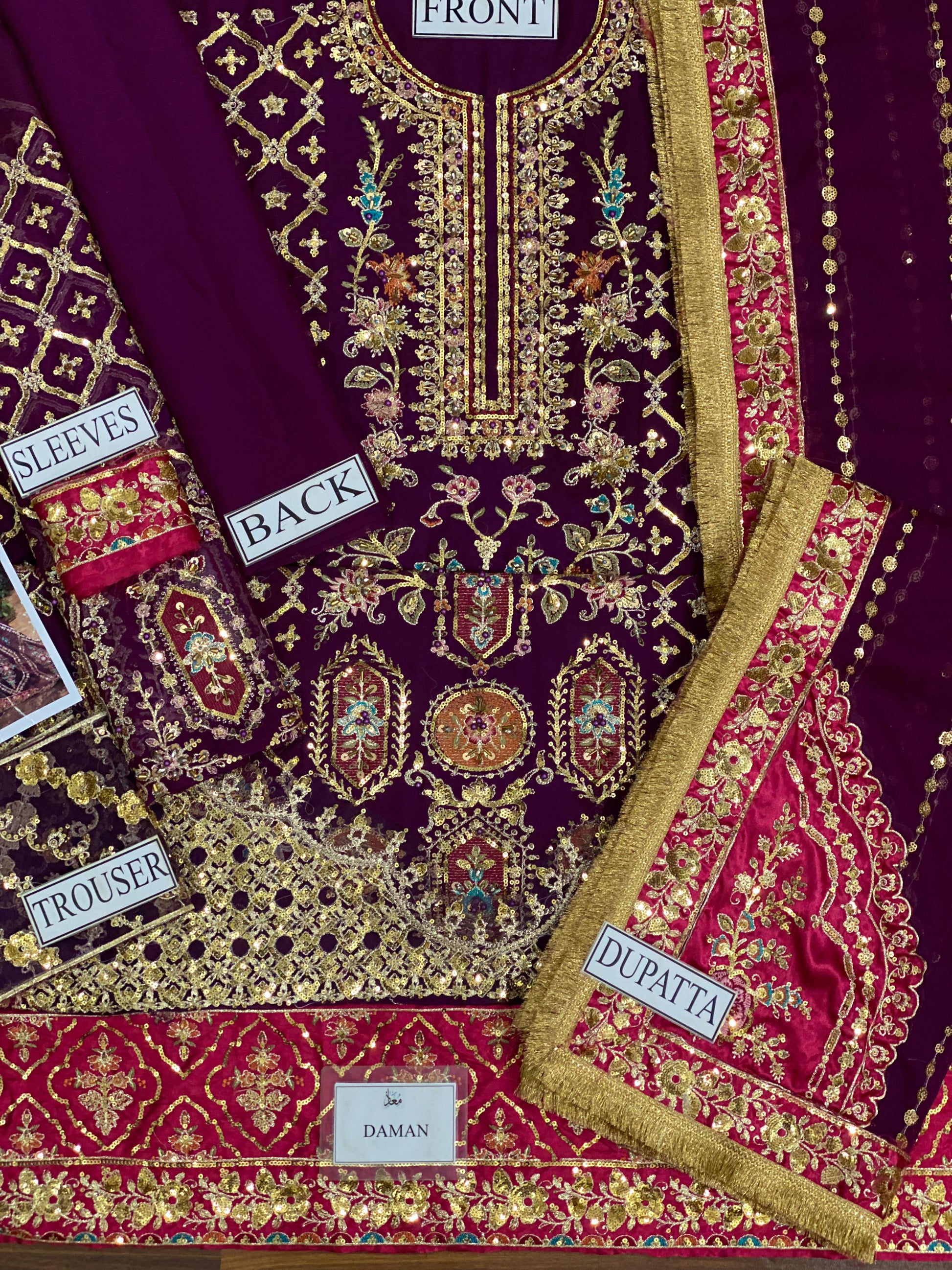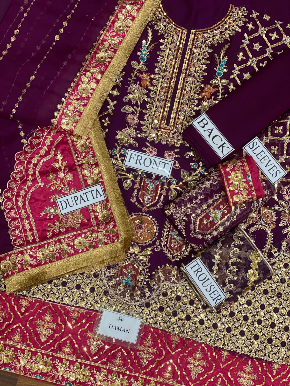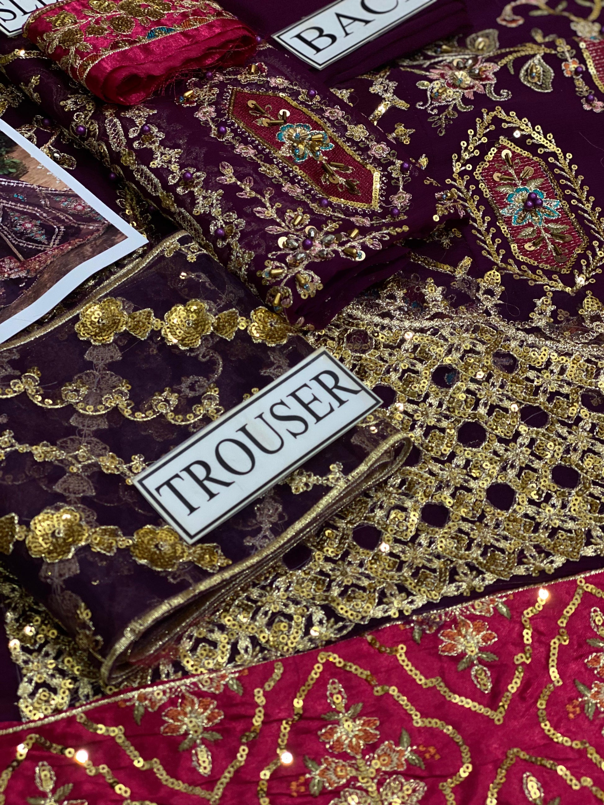 Chiffon embroided ready to wear dupatta with four sides borders on silk and four sided lace
