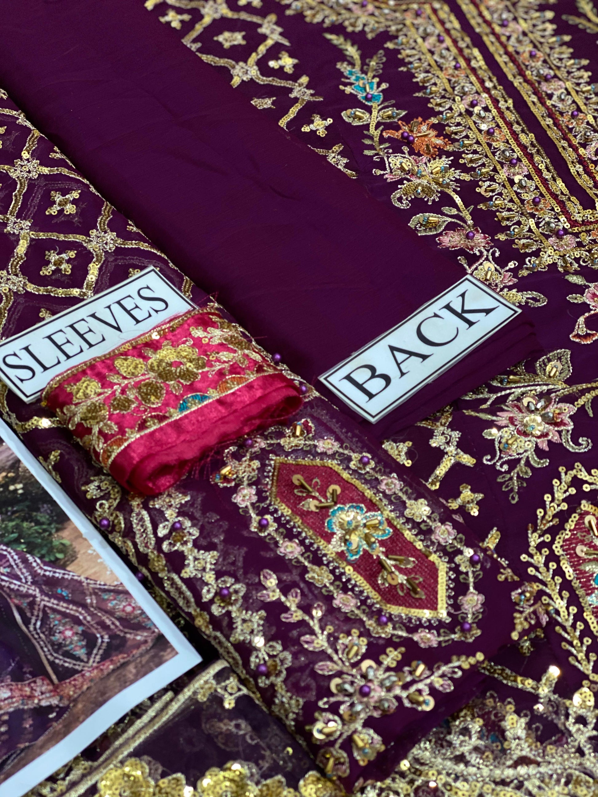 Embroided chiffon alteranate sleeves with adda work and border on silk