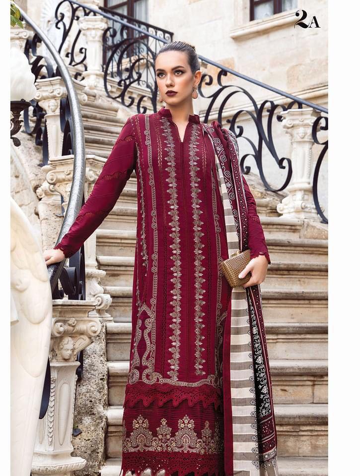 Heavy Embroidered Front Multi Thread Work With Embroidered Daman on Fabric