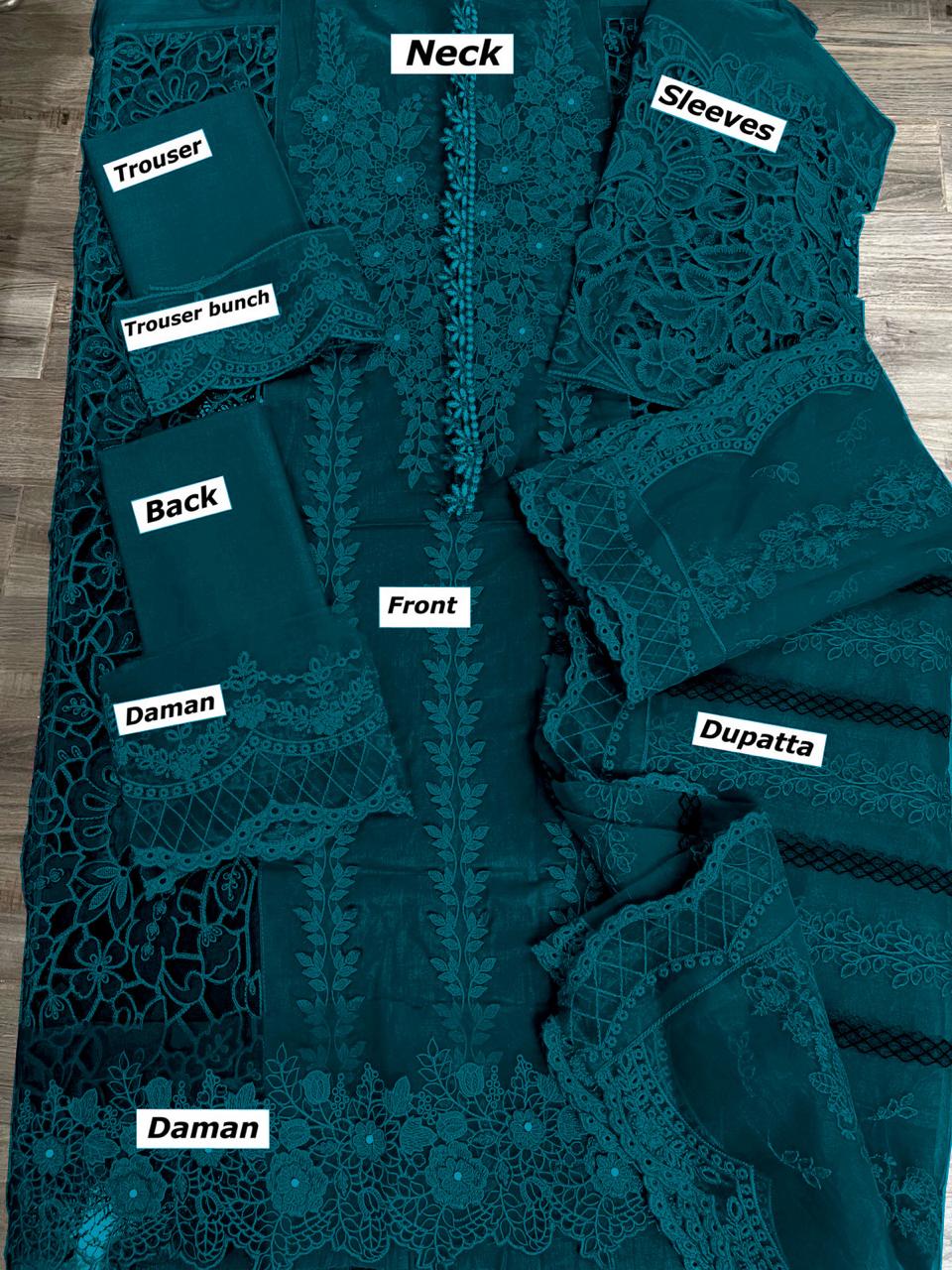*Sleeves* : Organza embroidered sleeves with LAZER CUTWORK