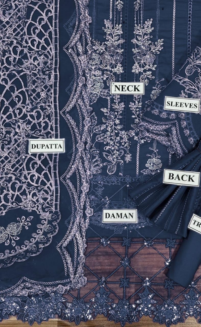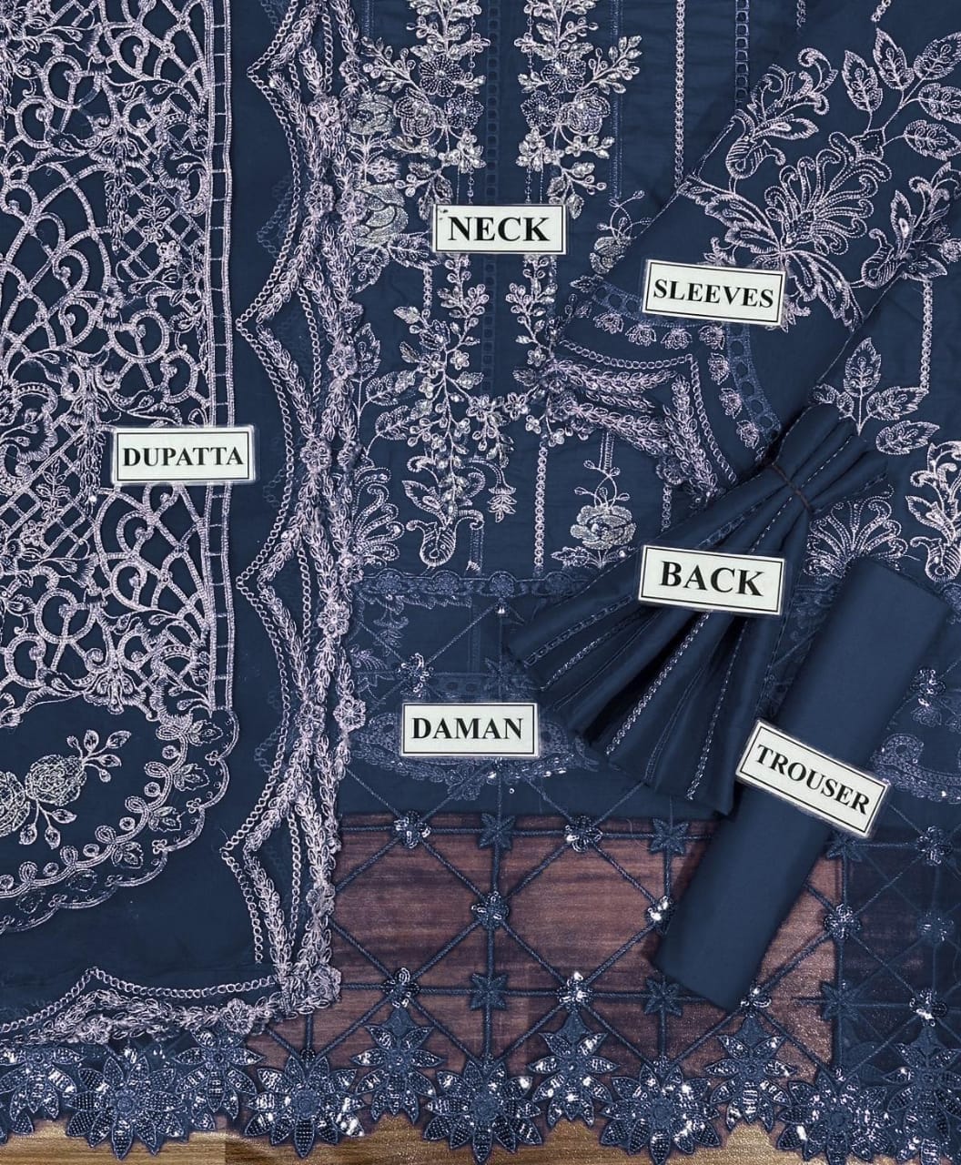 Front Made on Cotton Stuff With Thread Boring Schifflie Work & Thread Embroidery Along With Hand Work Neck Bunch & Organza