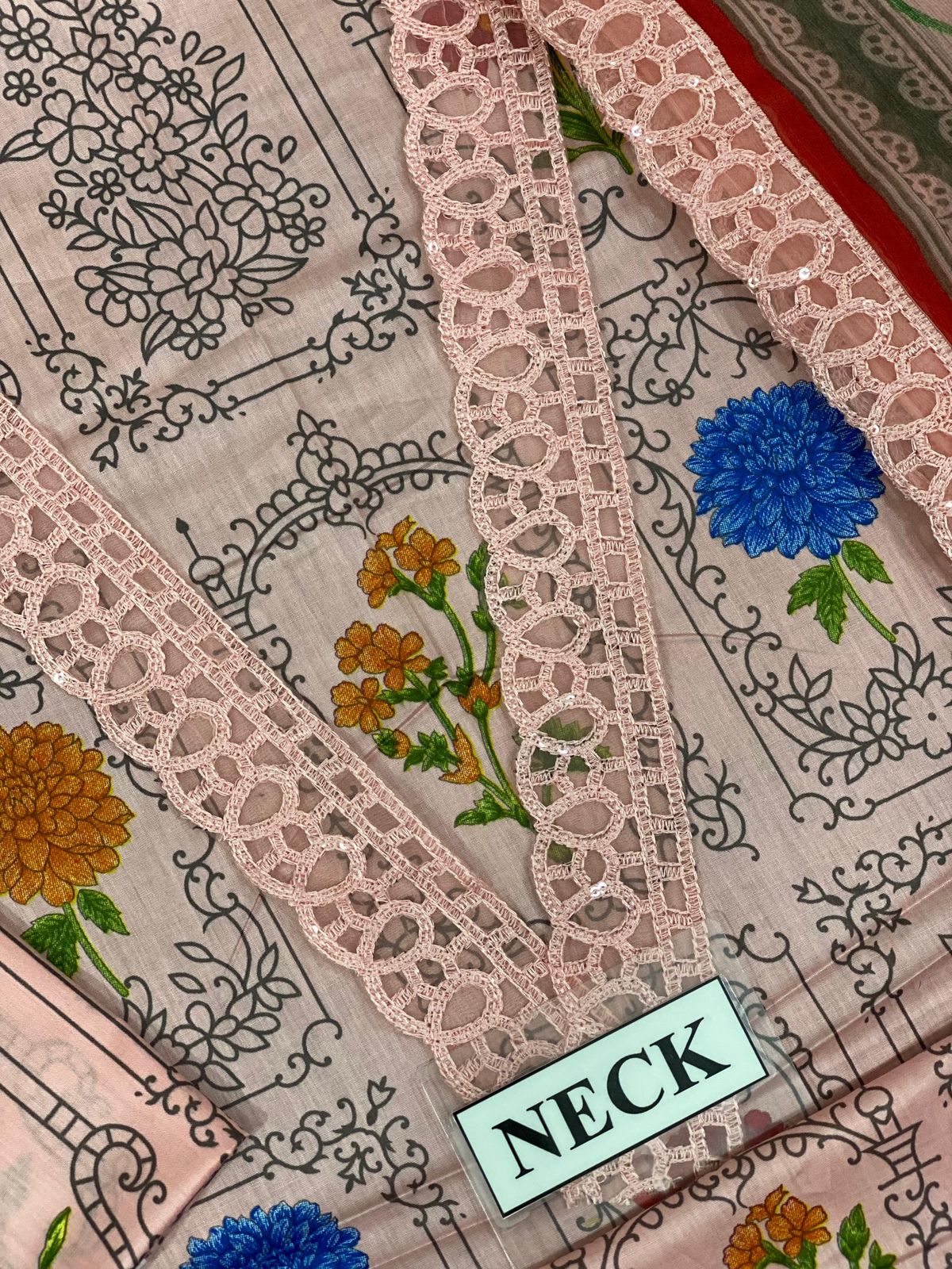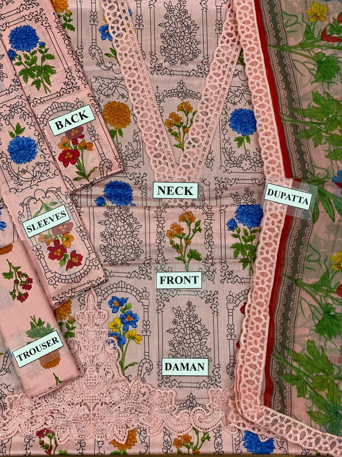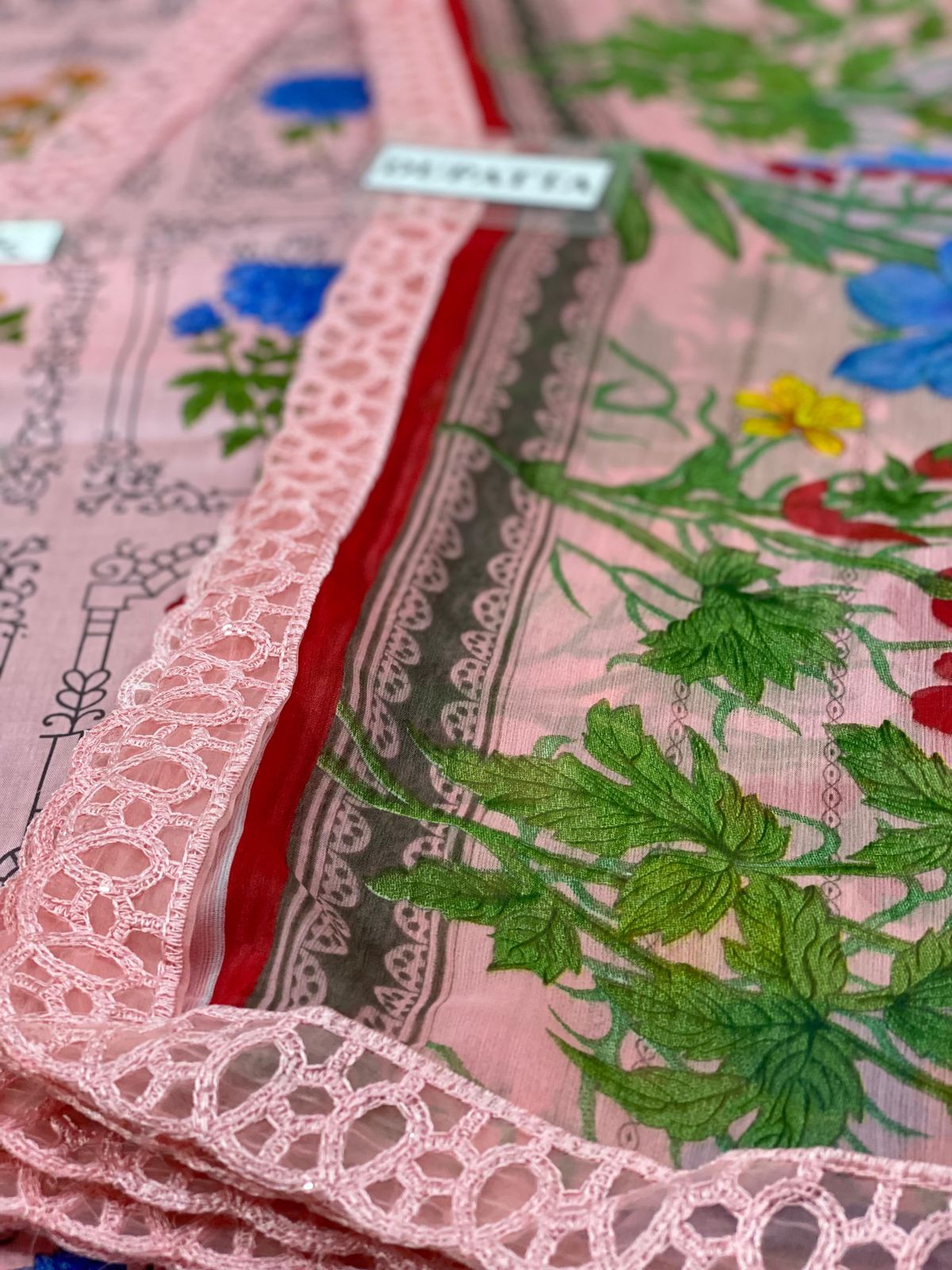Printed Chiffon Dupatta With 4 Side Lace Attached