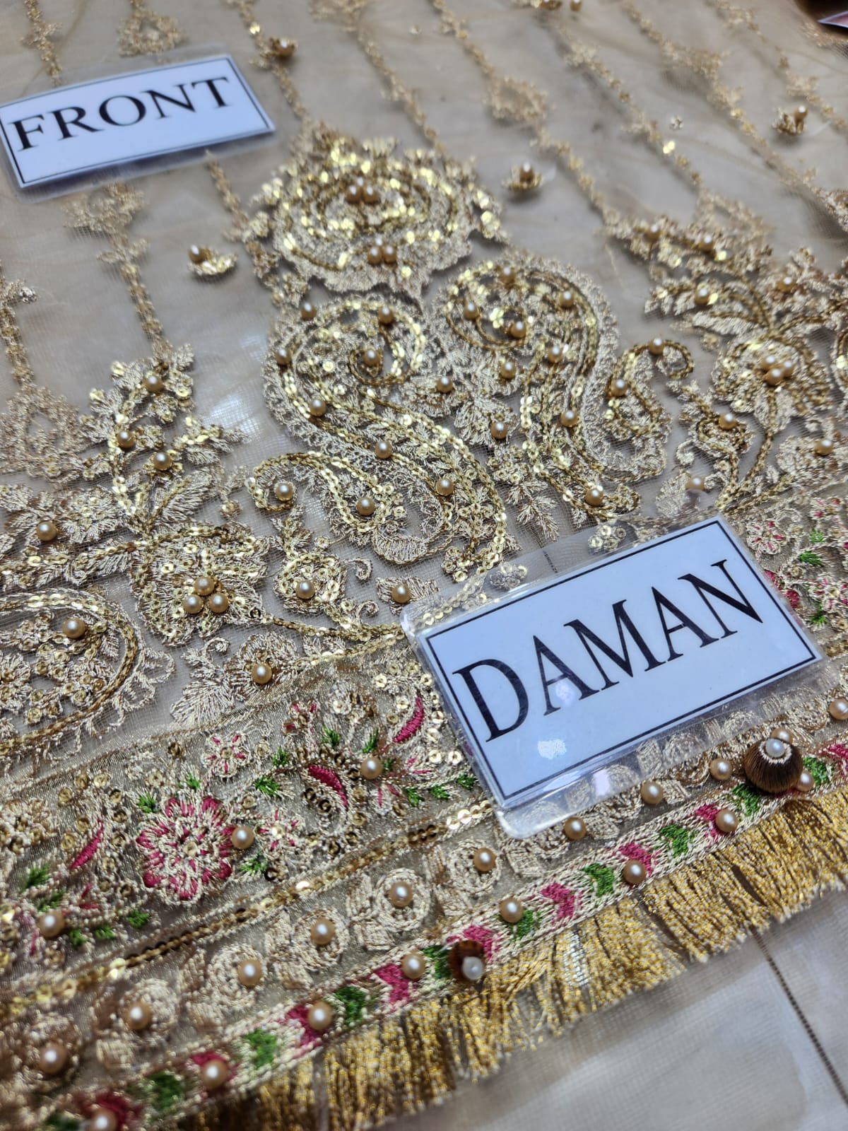 Heavy Embroidered Front Daman Lace With Kiran Lace & Attached Tessals