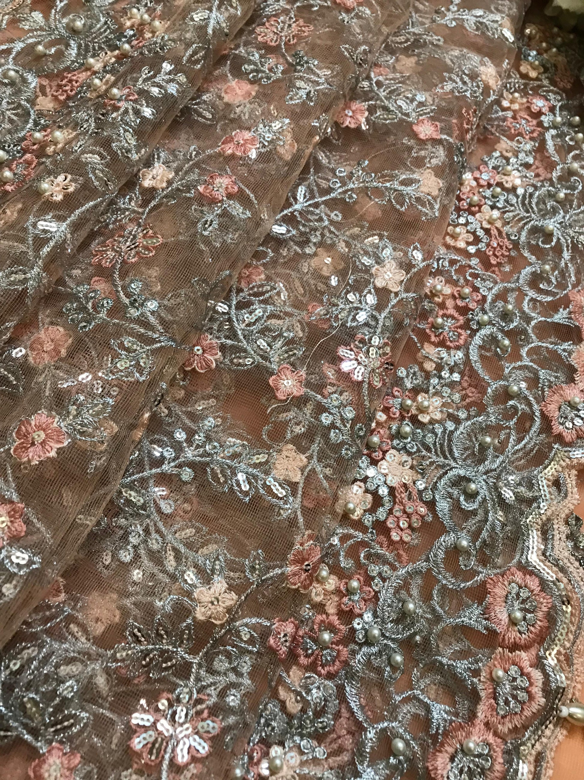 Fully Heavy Embroidered Net Front or Back With Cut Work Border