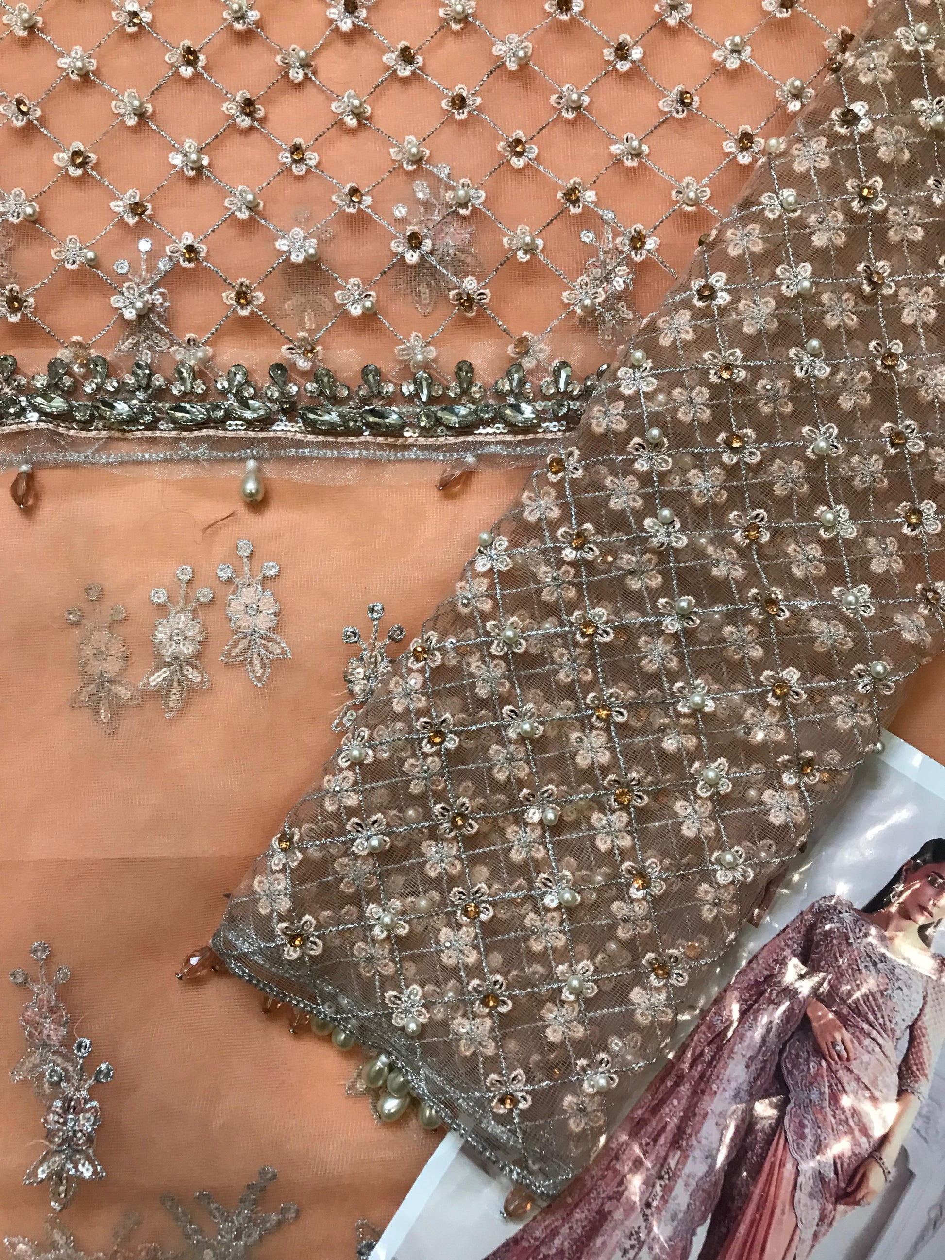 Fully Heavy Embroidered Net Front Body With Hand Work