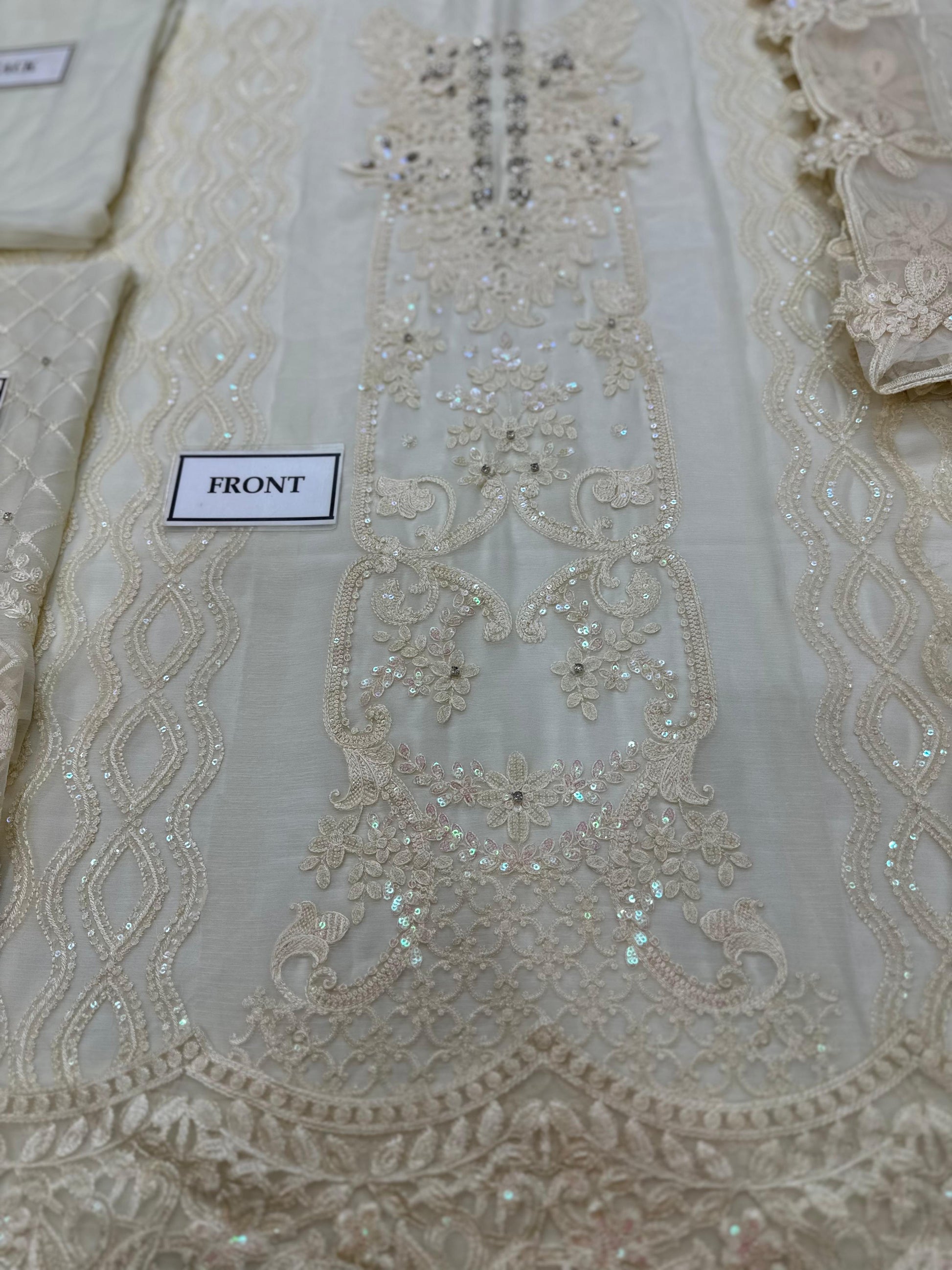 Embroidered Chiffon Center Panel for Front with Hand Embellished
