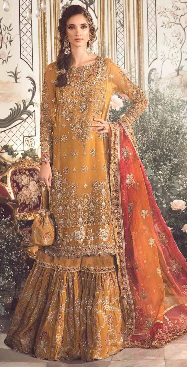 Chiffon Heavy Embroidered Front With Adda Work On Front