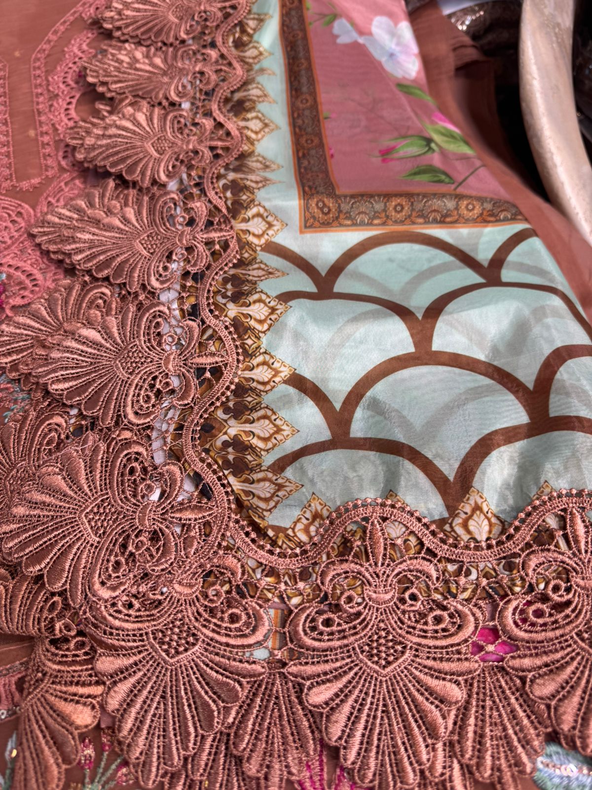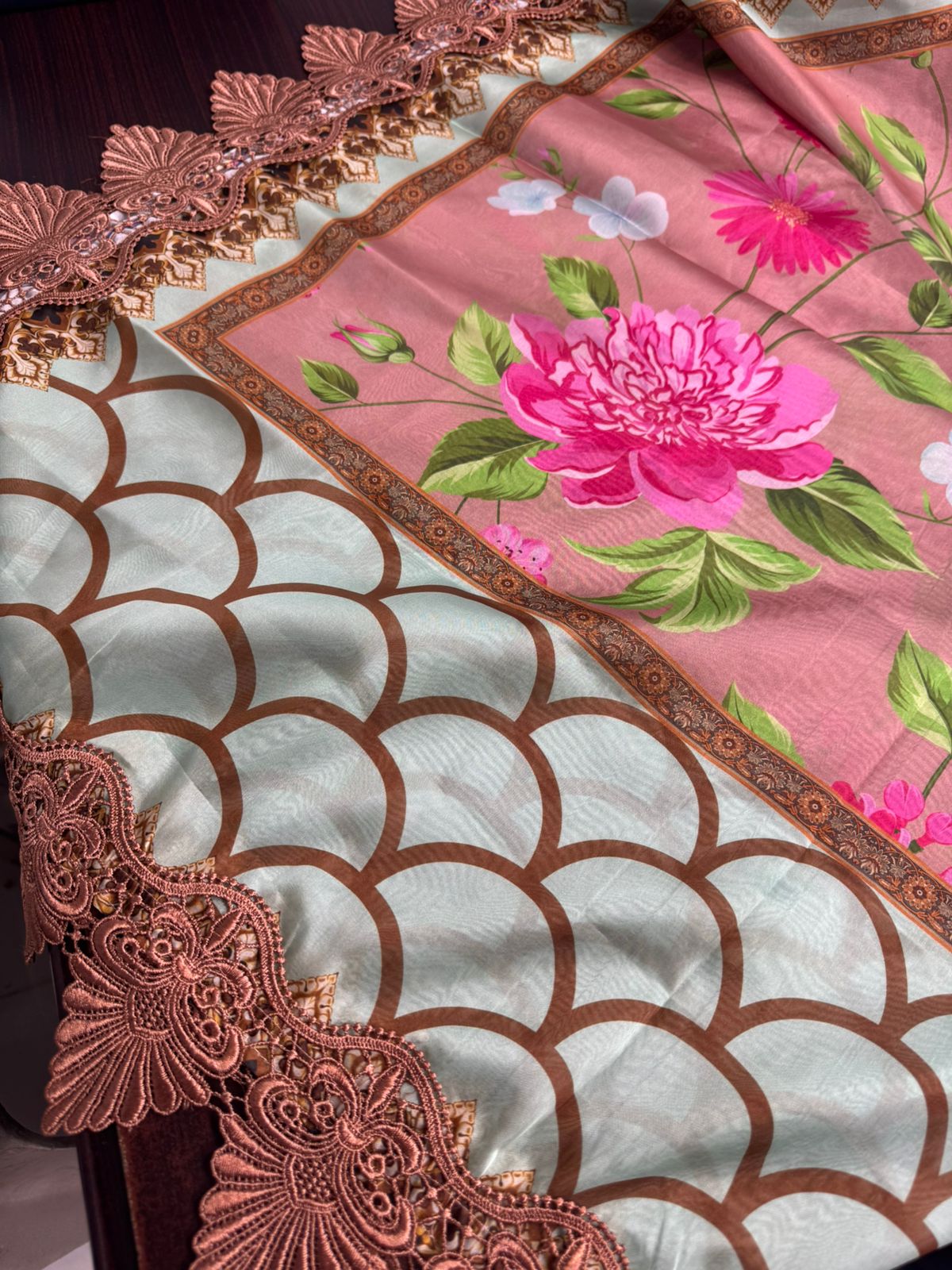 Digital printed silk Dupatta With 4 Side Embroidered heavy lace attached