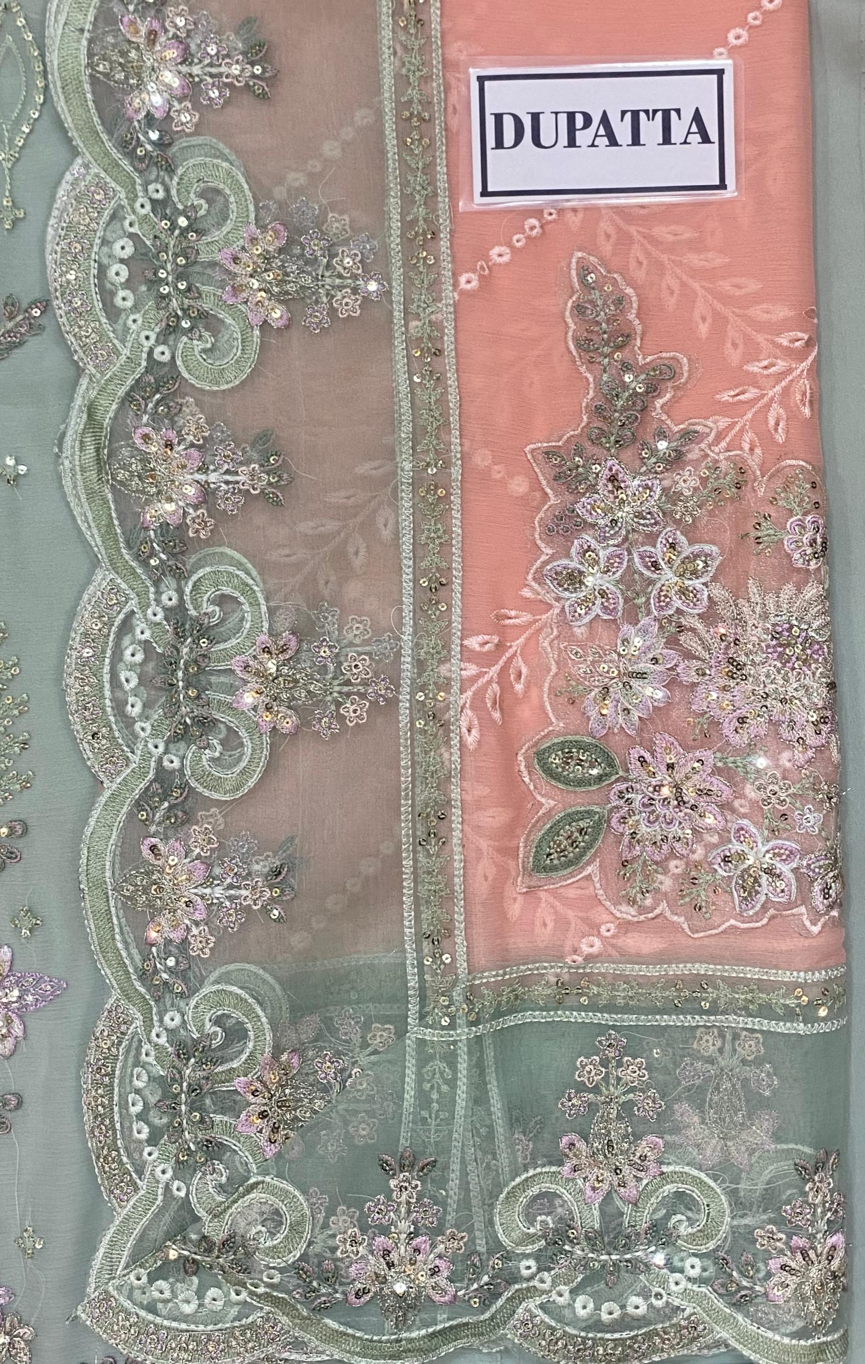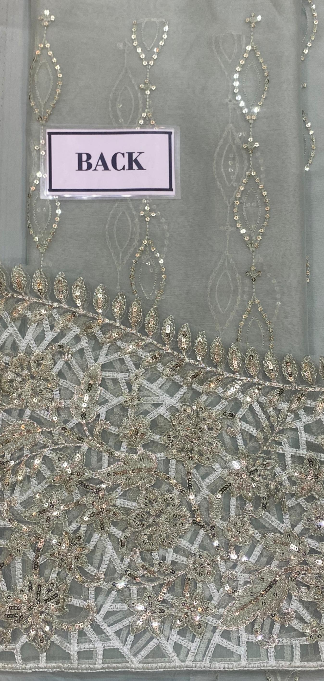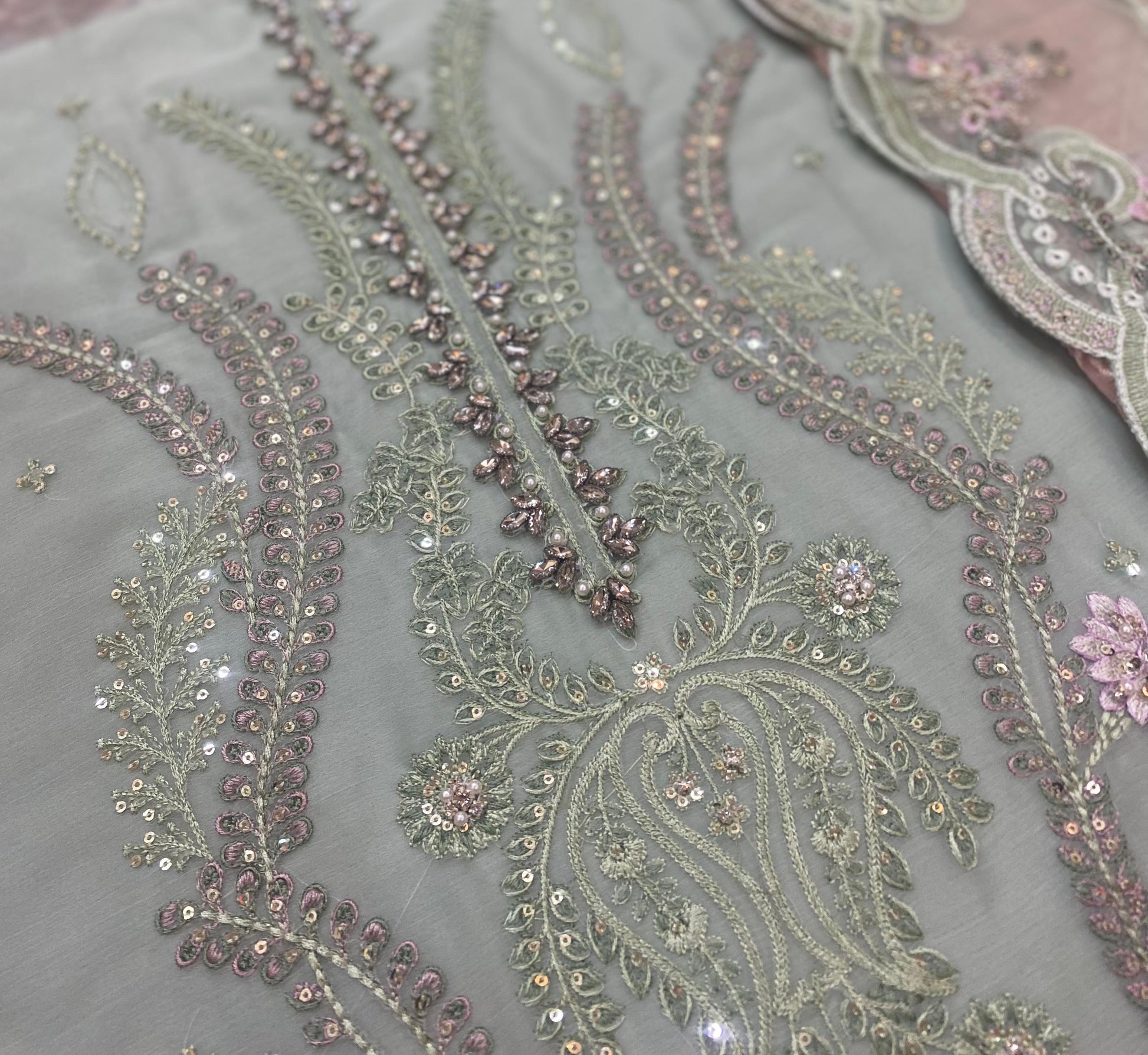 Embroidered Semi Pure Chiffon Front with Hand Embellishment