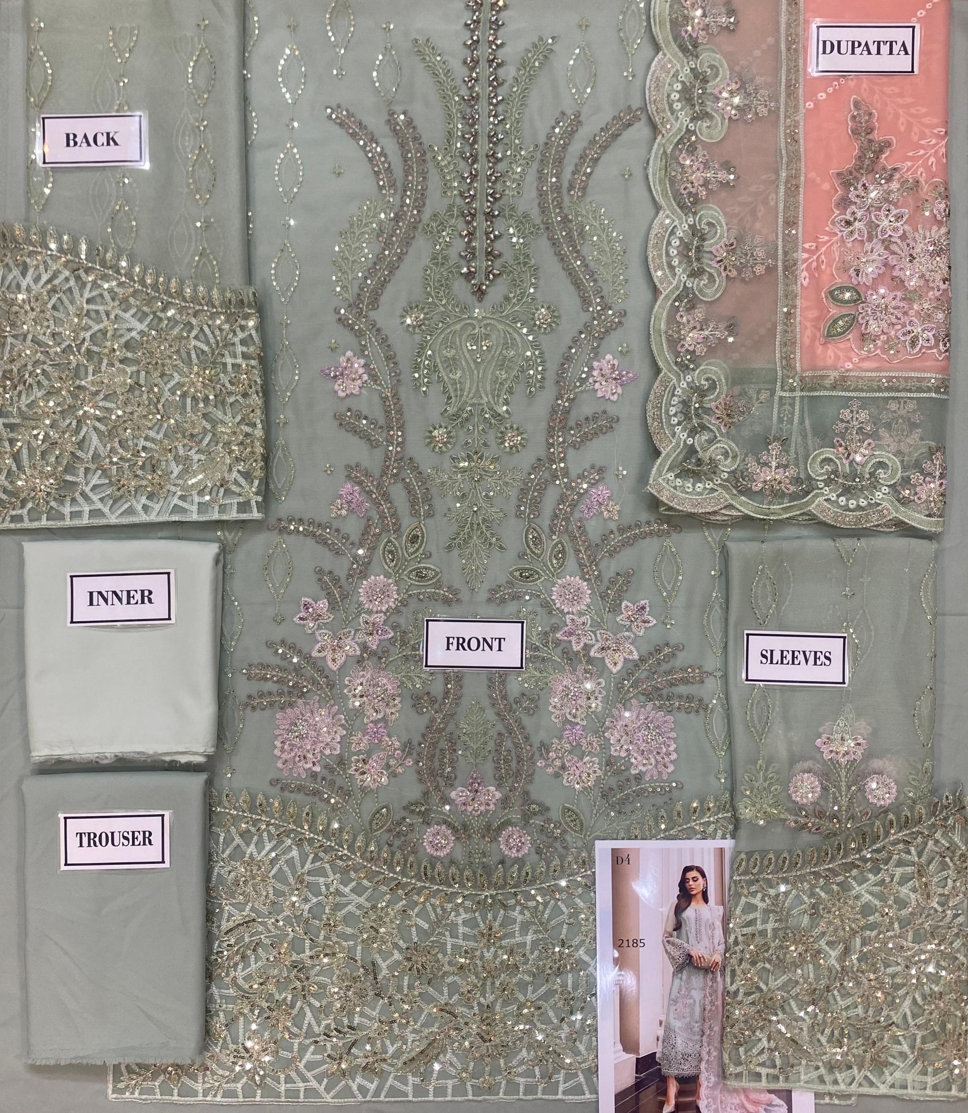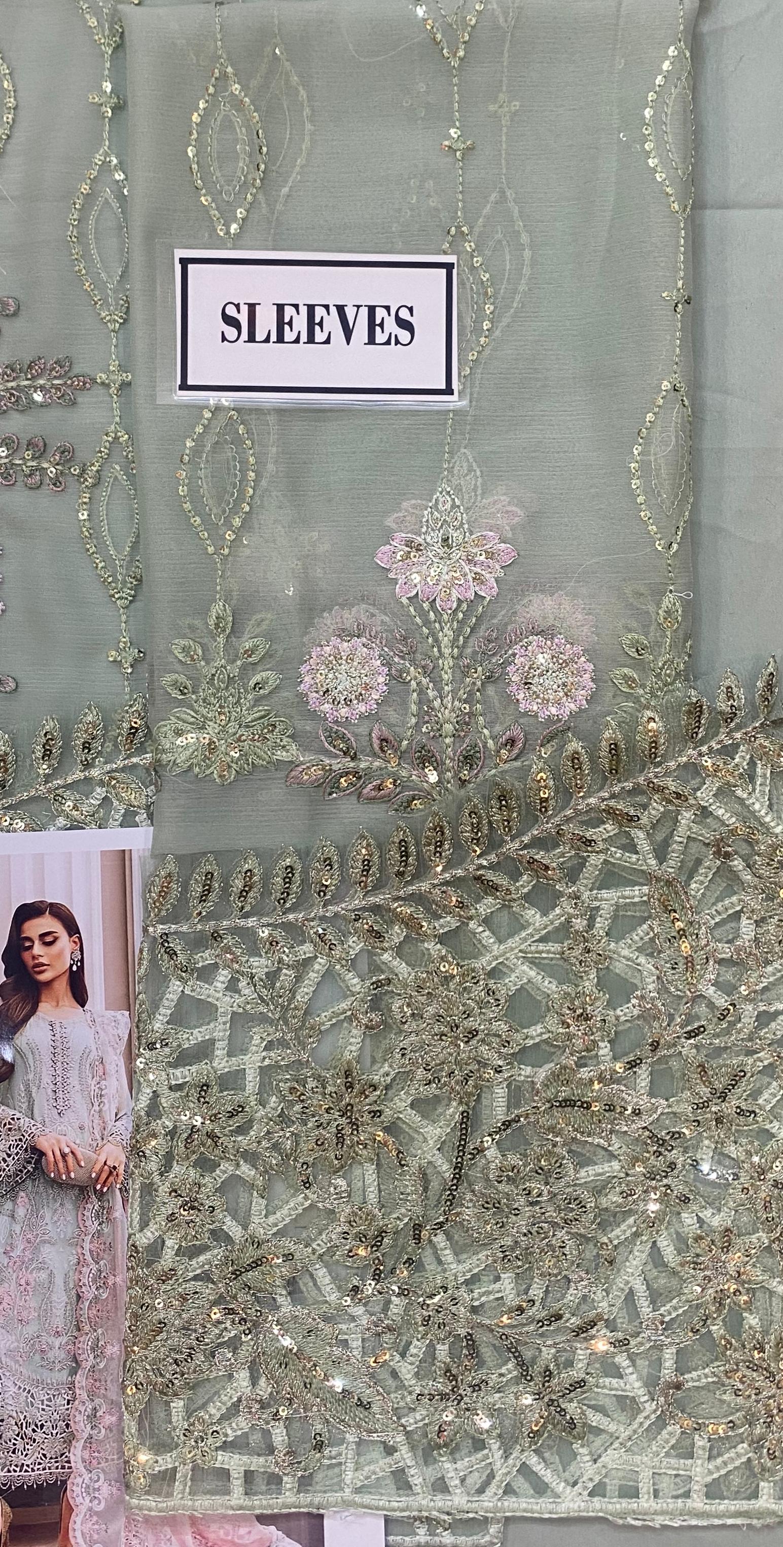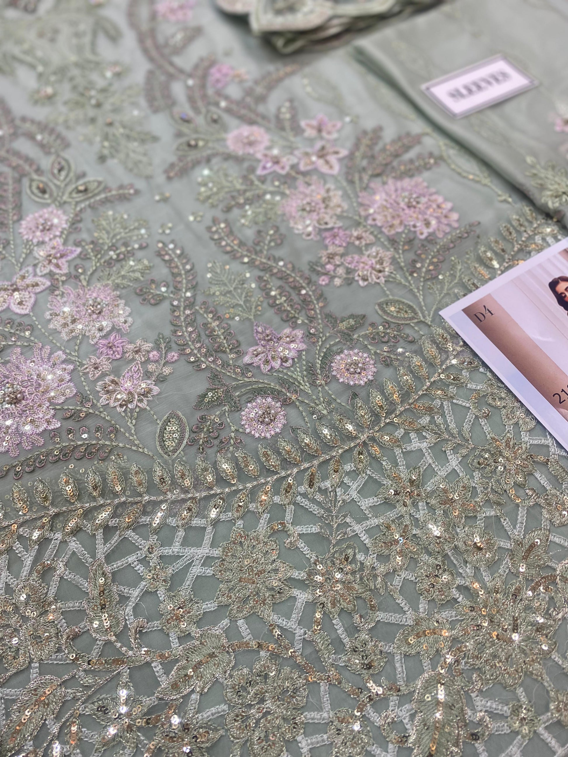 Embroidered Semi Pure Chiffon Front with Hand Embellishment