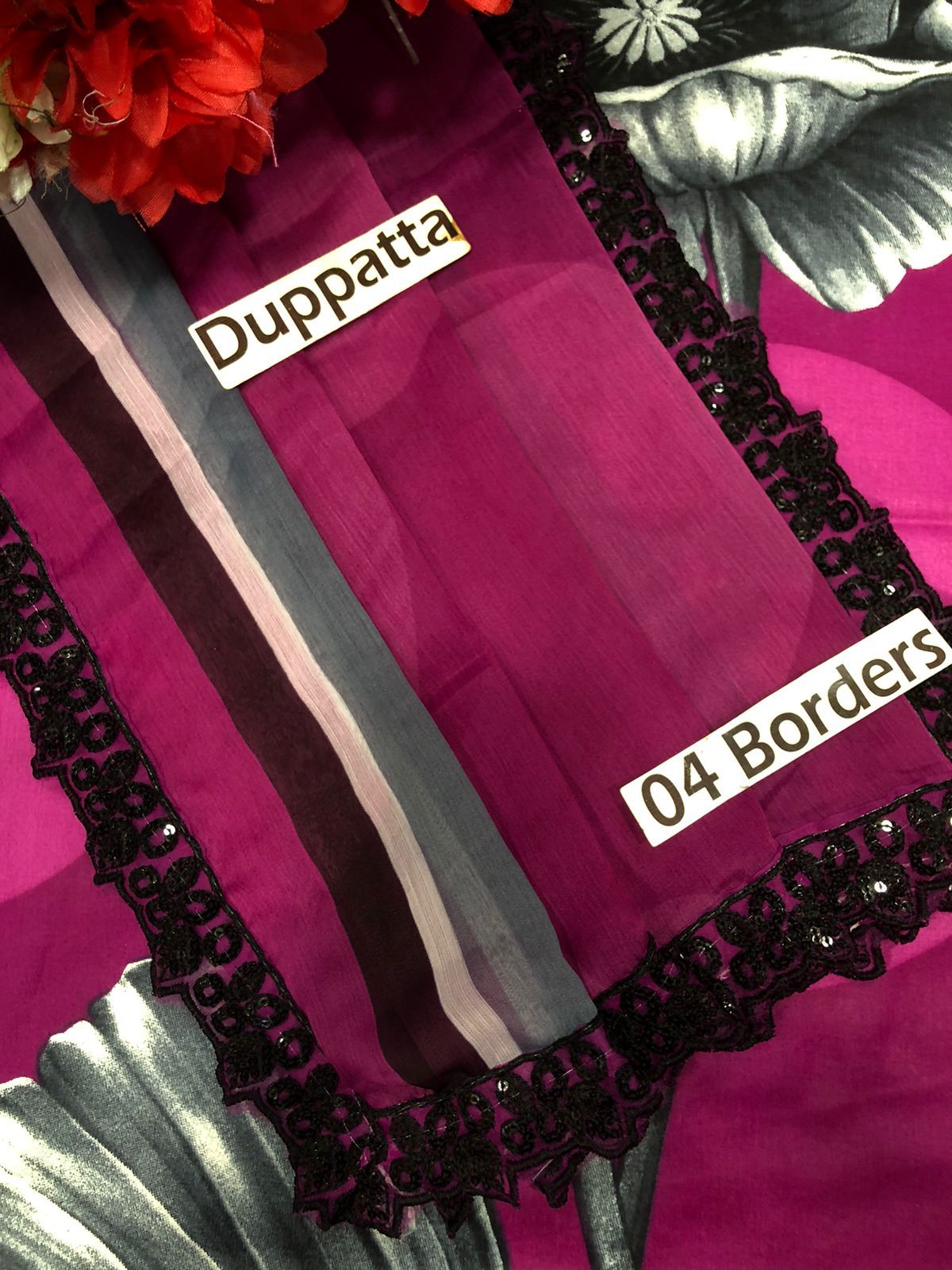 Heavy Embroidered Chiffon Dupatta With 4 Side Cut work Border Dupatta