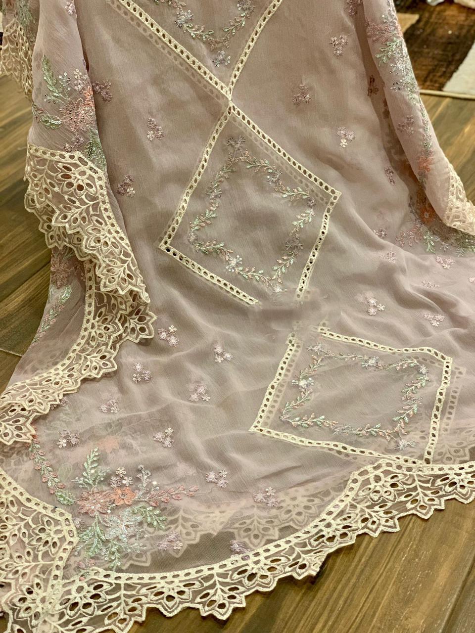 Chiffon fully heavy embroidered scifflie & spengle work Dupatta with 4 side heavy embroidered boarder attach with fully cut work
